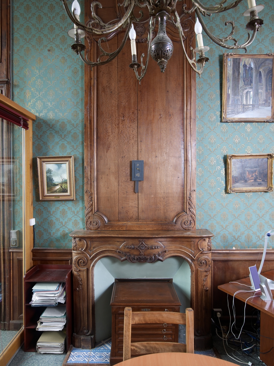 Tréguier, boulevard Anatole Le Braz : palais épiscopal aujourd'hui mairie et bibliothèque, aile nord-ouest, premier étage, pièce avec cheminée et boiseries (actuel bureau du directeur général des services)Immatriculation
