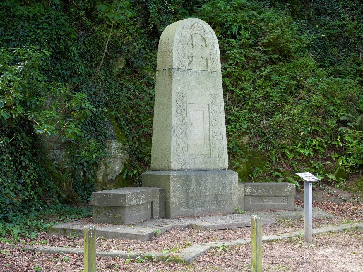 Tréguier, "Bois de l'Évêché" aujourd'hui "Bois du Poète" : monument funéraire et tombe de Anatole Le Braz réalisés par le sculpteur Armel Beaufils en 1926Immatriculation