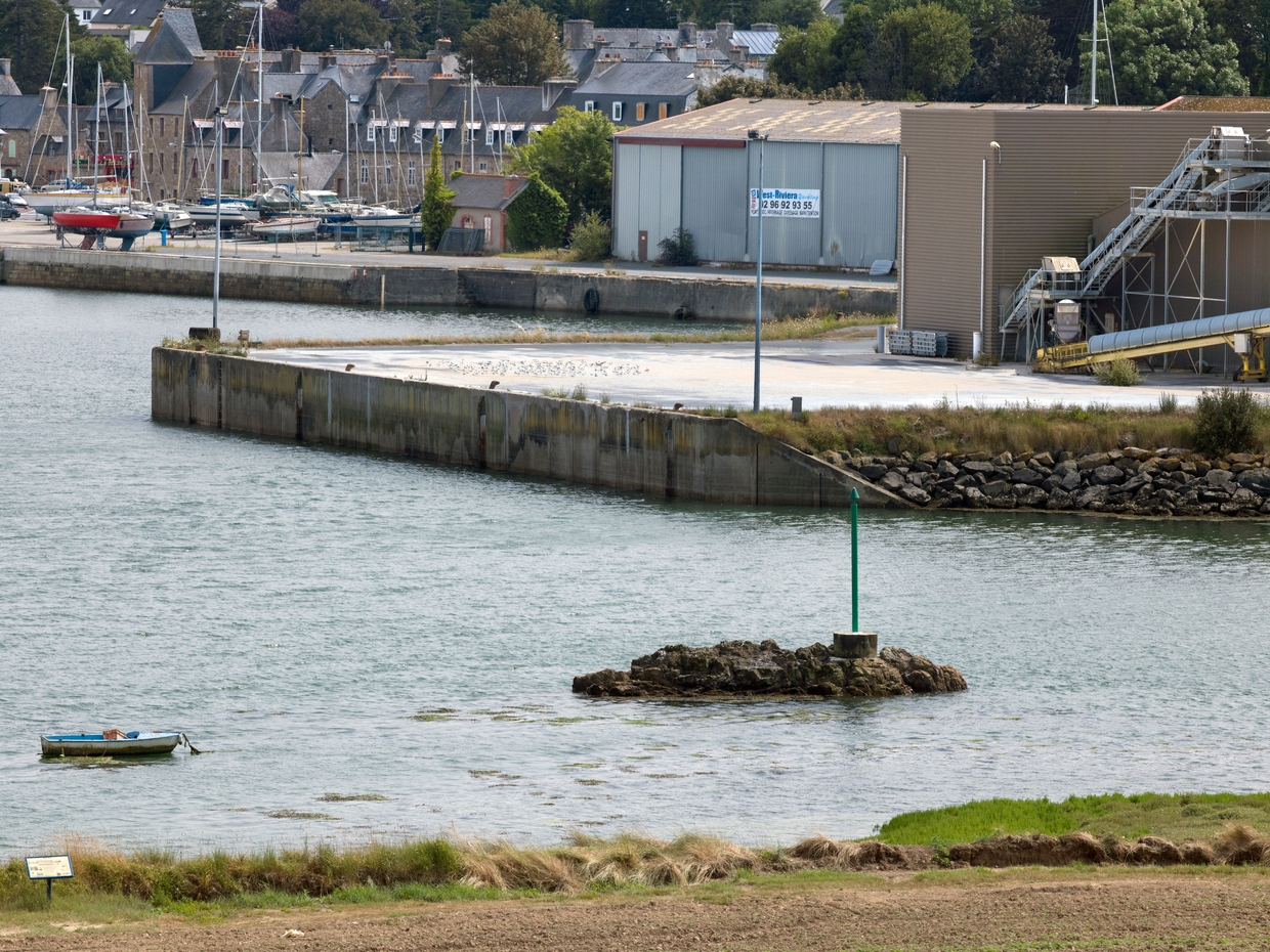 Tréguier : Balise du tas de Fumier. En arrière plan à droite, quai sud (poste n° 5) du port de commerceImmatriculation