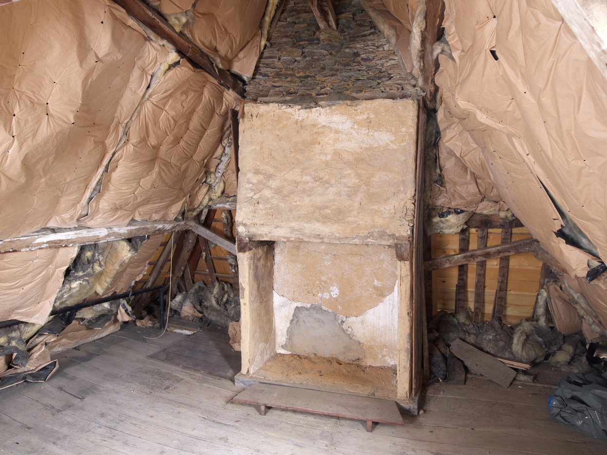 Combles. Partie ouest. Chambre de domestique avec cheminée en pierre et torchisImmatriculation