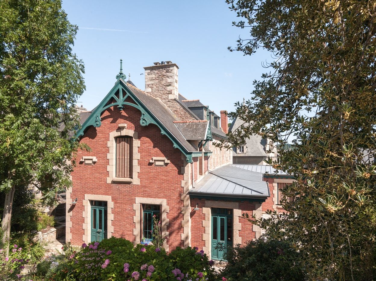 Extension de 1905. Partie abritant l'entrée domestique, la cuisine et l'office. Pignon sud à toit débordant, rives et charpente ouvragées. Vue générale sudImmatriculation
