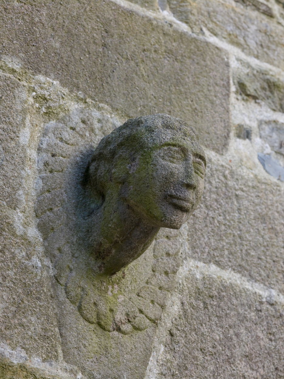 Dépendances. Pignon nord. Détail d'une tête sculptée en ronde-bosseImmatriculation