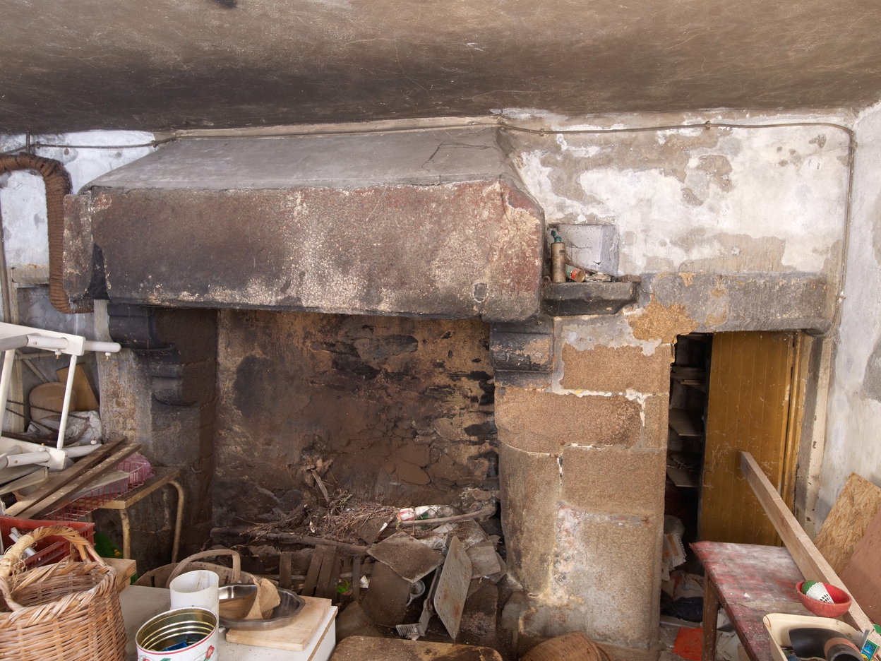 Tréguier, 15 rue Colvestre : maison à pan de bois rouge, aile sud, cheminée, niches et porte de communicationImmatriculation