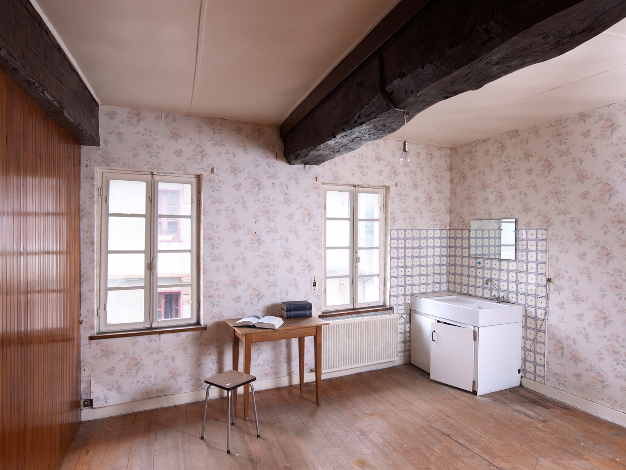 Tréguier, 15 rue Colvestre : maison à pan de bois rouge, appartement donnant sur la rue ColvestreImmatriculation