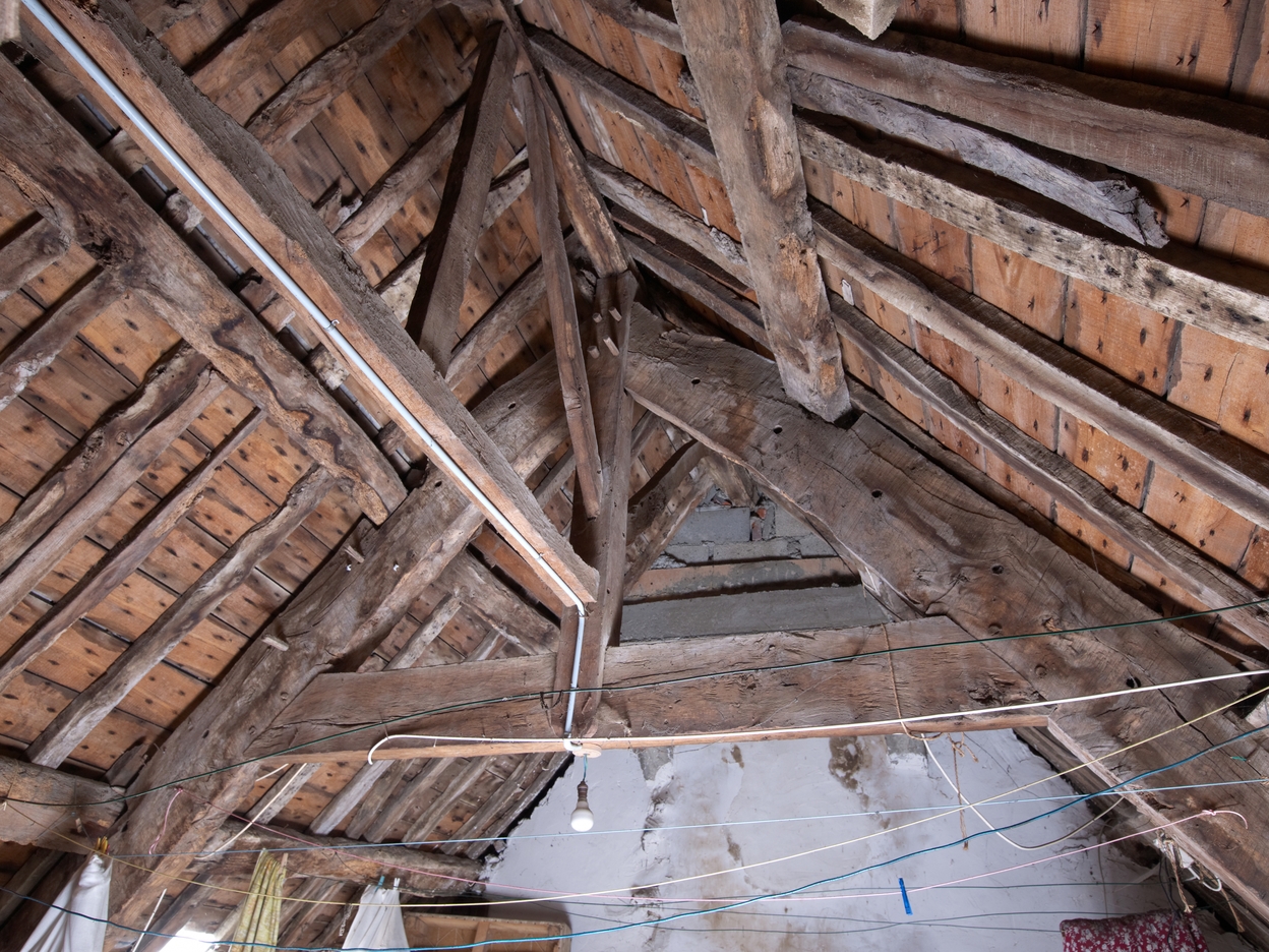 Tréguier, 15 rue Colvestre : maison à pan de bois rouge, charpente ancienneImmatriculation