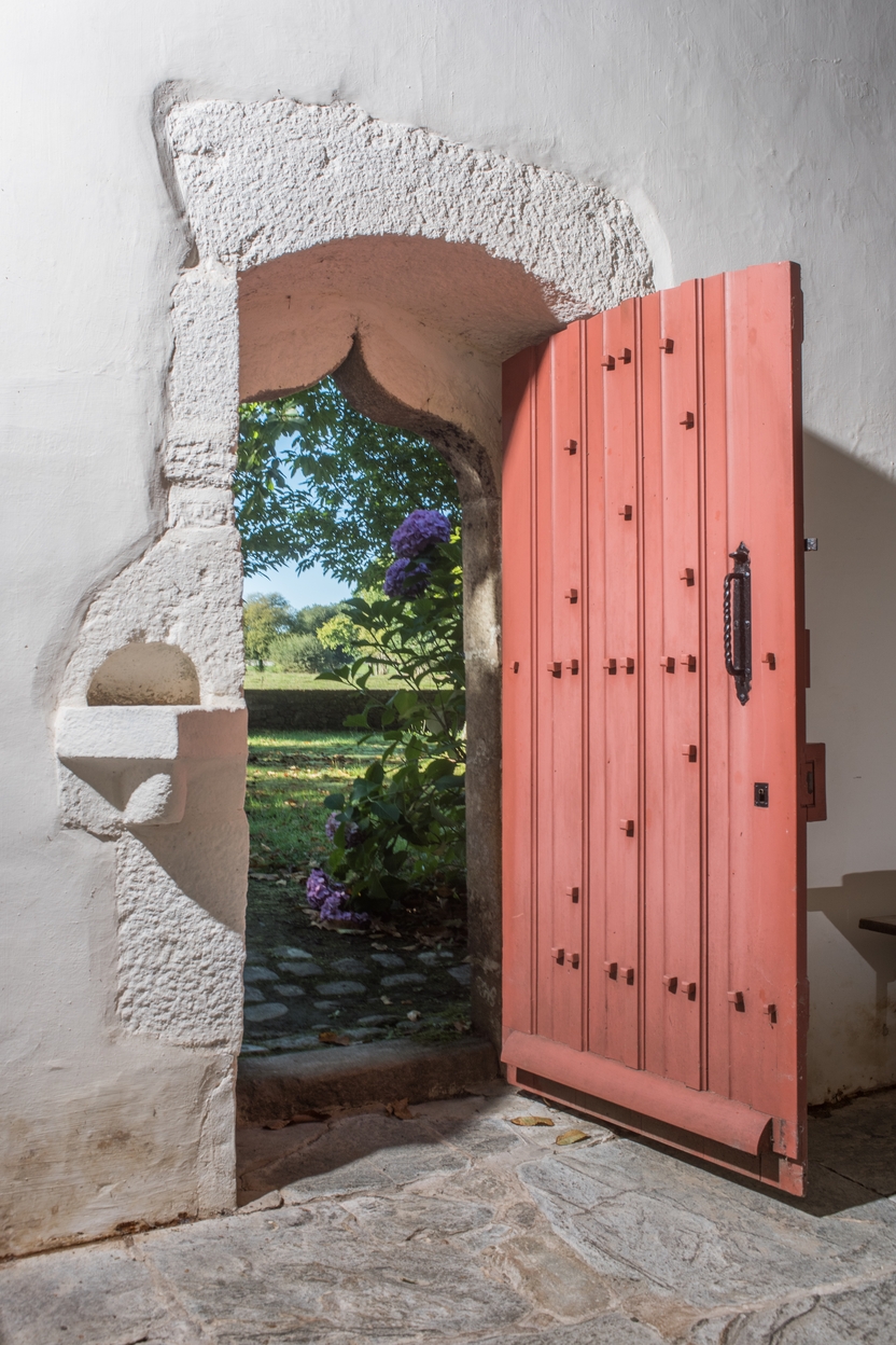 Chapelle. Intérieur. Mur sud. Détail de la porte et du bénitierImmatriculation