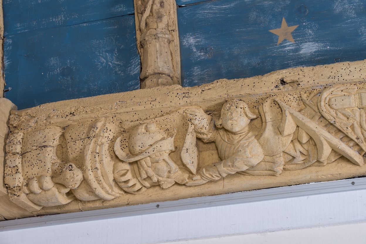 Sablières : personnage sortant d'un engoulant.Immatriculation