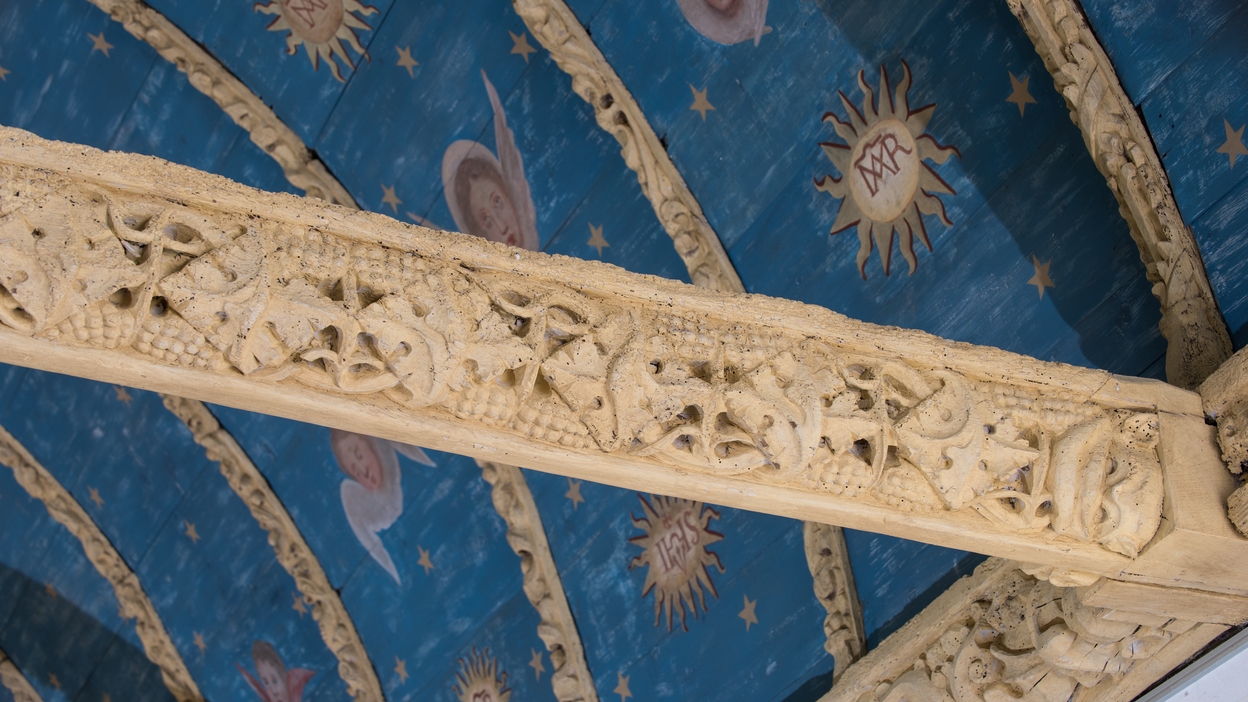 Face ouest de l'entrait de la nef : autres pampres de vigne.Immatriculation