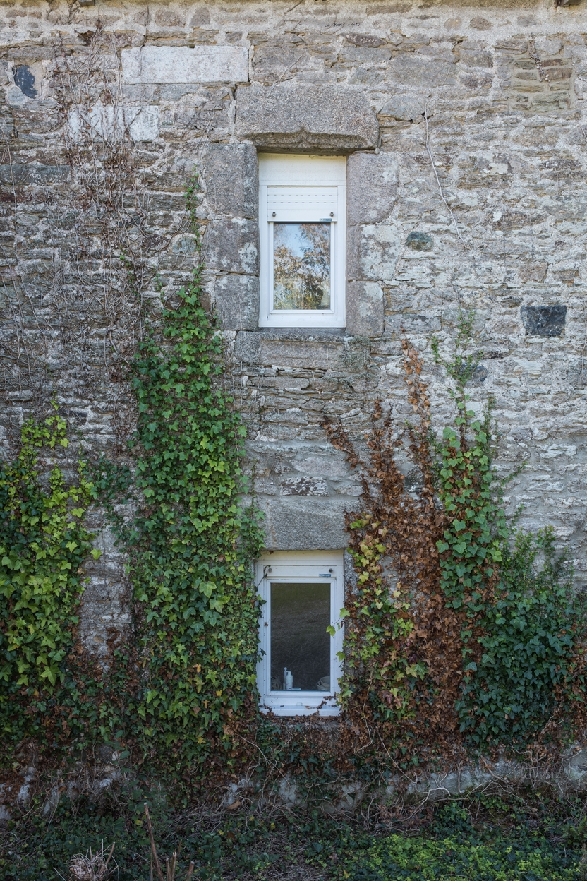 Façade Nord, au premier étage baie à linteau en accolade et appui saillant du premier logis.Immatriculation