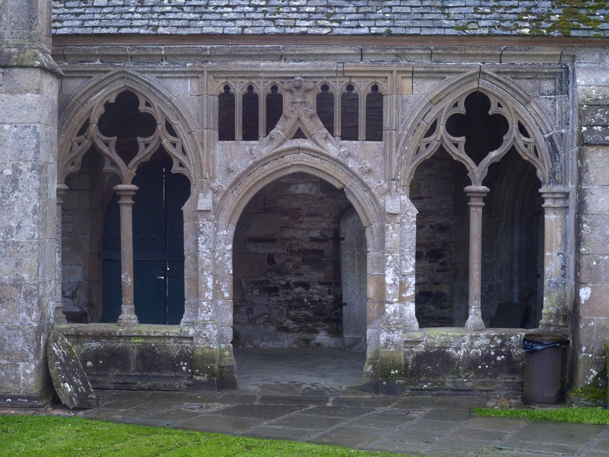 Tréguier : cloître de la cathédrale, entrée sud de la galerie depuis la cour centraleImmatriculation