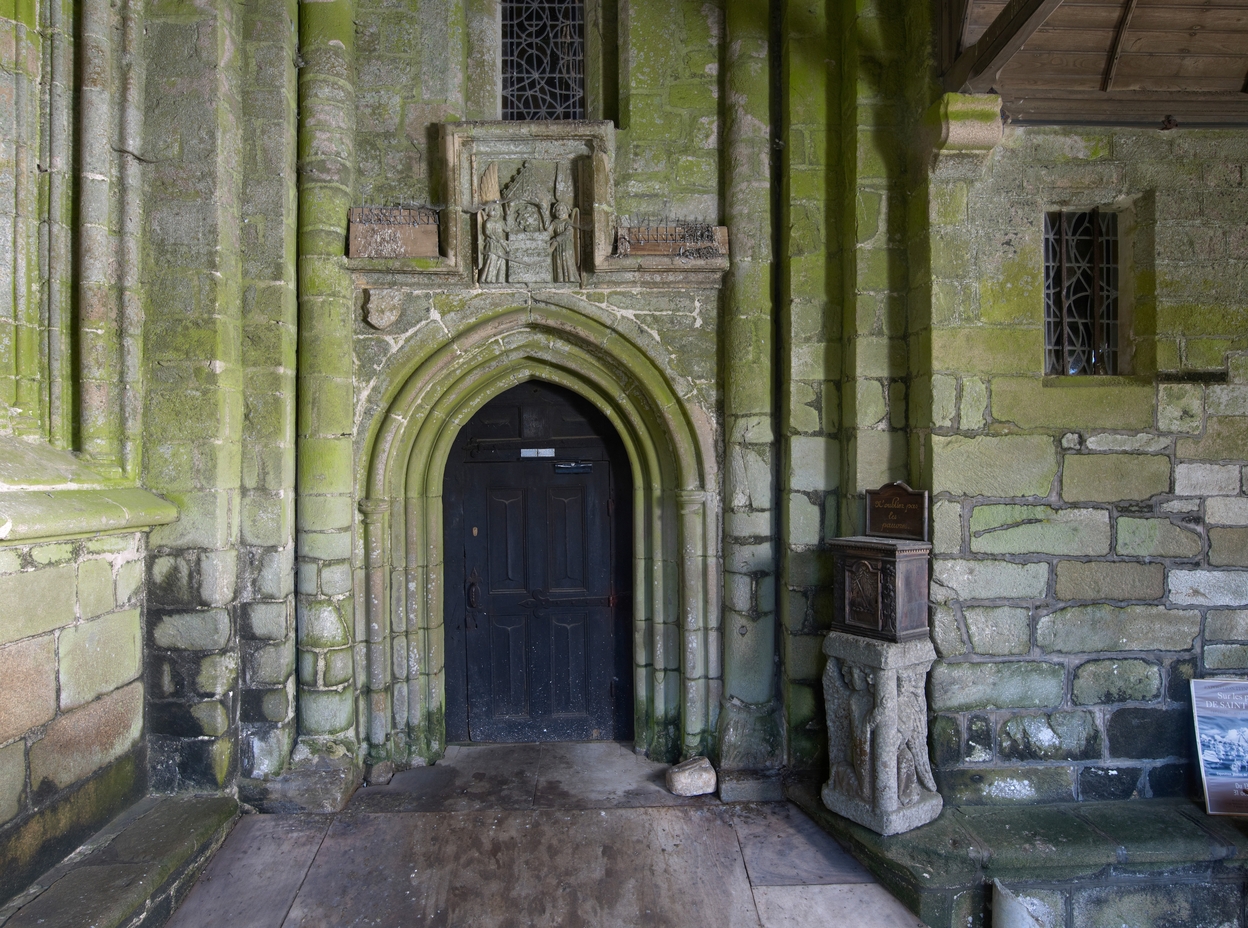 Tréguier : cloître de la cathédrale, extrémité sud-ouest de la galerie, porte Saint-JeanImmatriculation