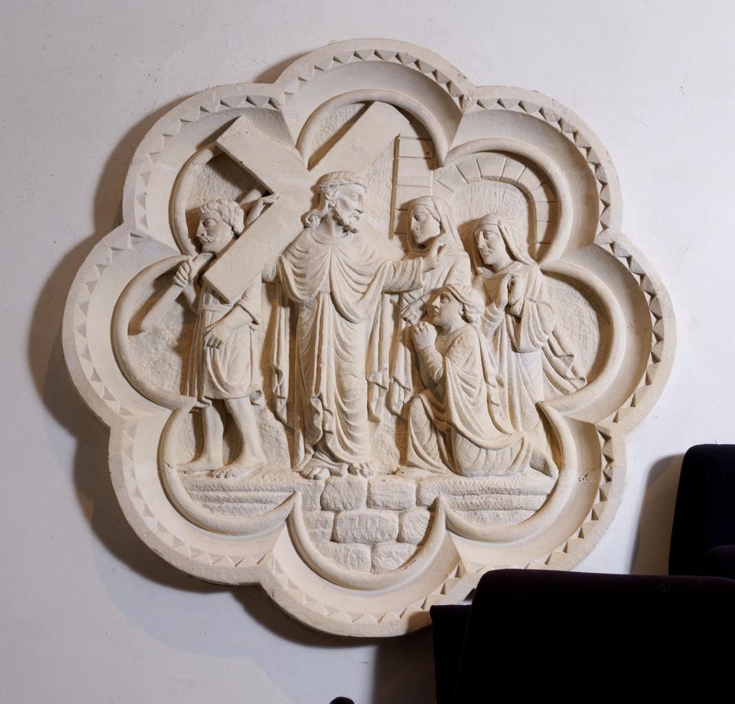 Tréguier, place de la République : chapelle du Petit Séminaire aujourd'hui Théâtre de l'Arche, chemin de croix de Louis Savary daté 1896, Jésus rencontre les femmes de Jérusalem qui pleurentImmatriculation