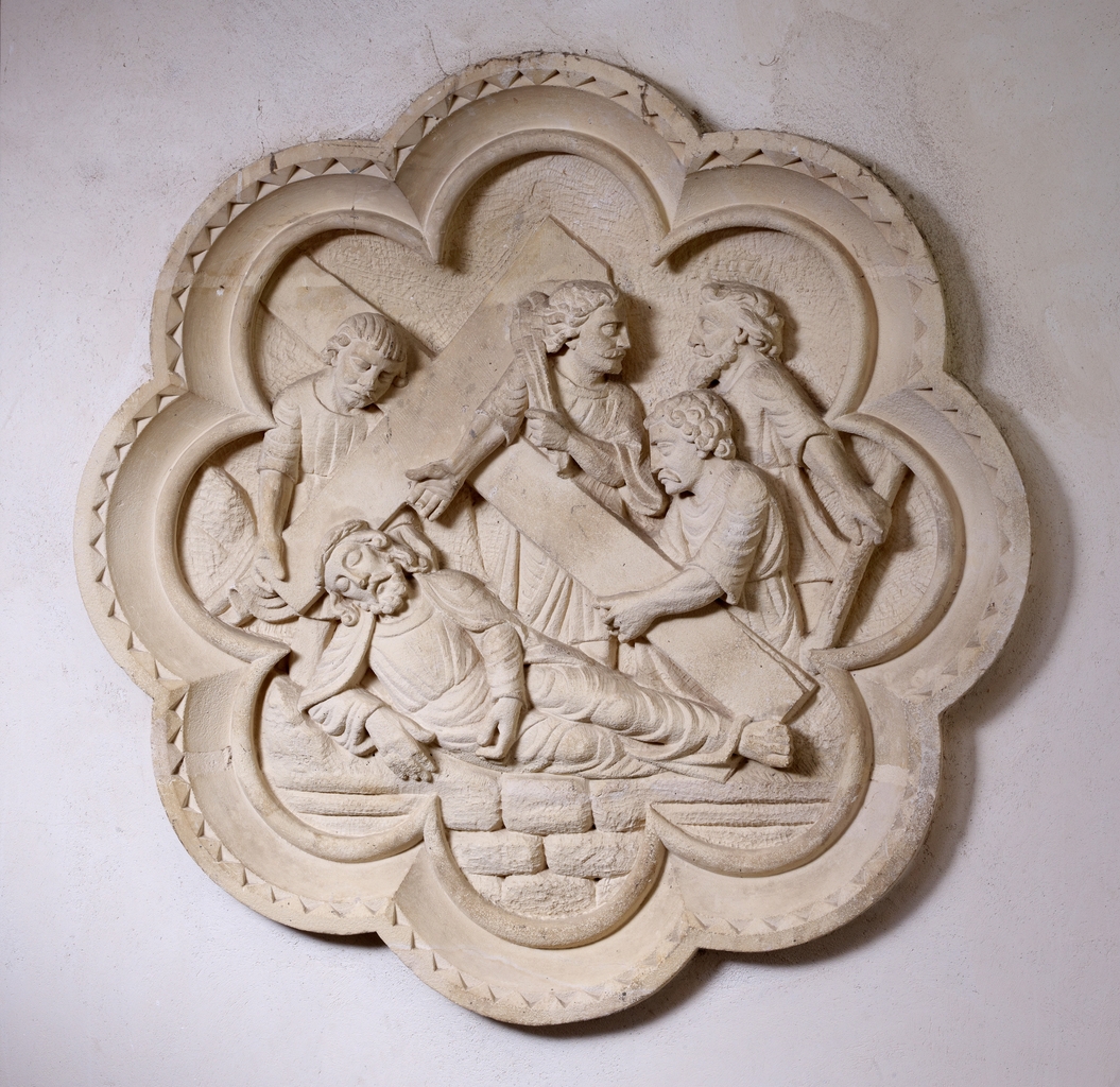 Tréguier, place de la République : chapelle du Petit Séminaire aujourd'hui Théâtre de l'Arche, chemin de croix de Louis Savary daté 1896, Jésus s’écroule sous le poids de la croixImmatriculation