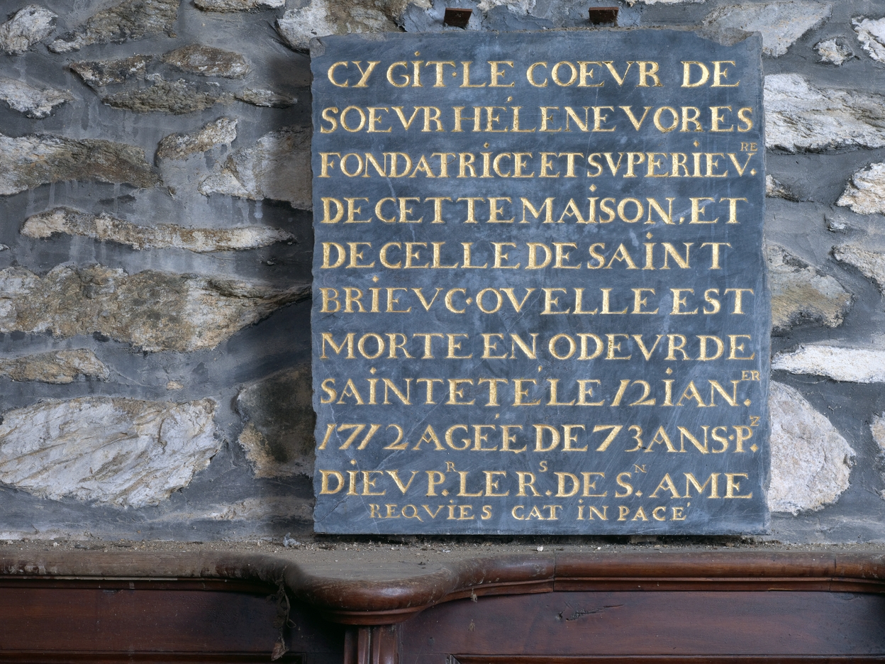 Chapelle. Avant-choeur des soeurs. Epitaphe de soeur Hélène Vorèse, fondatrice et supérieure du couventImmatriculation