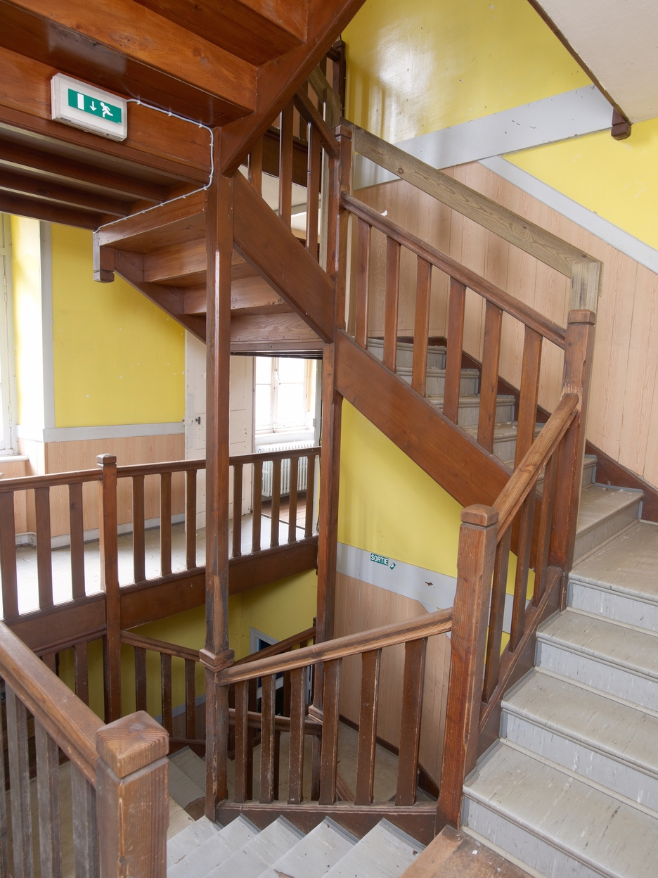 Escalier desservant les salles de classe. Vue généraleImmatriculation