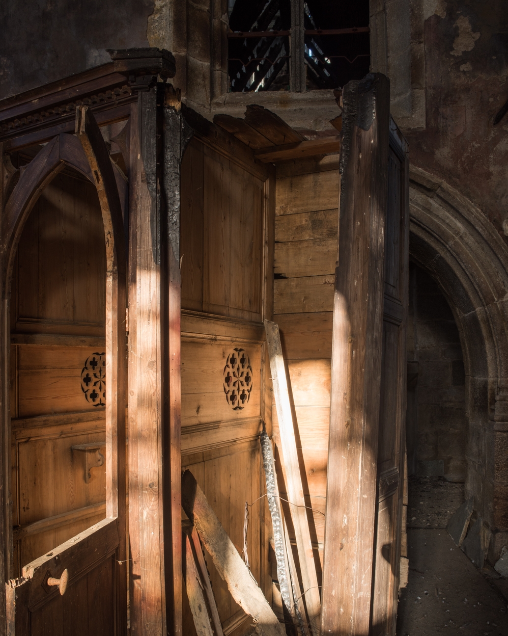 Trémel, le bourg : église paroissiale Notre-Dame, vue intérieure (après l'incendie du 21 juin 2016)Immatriculation