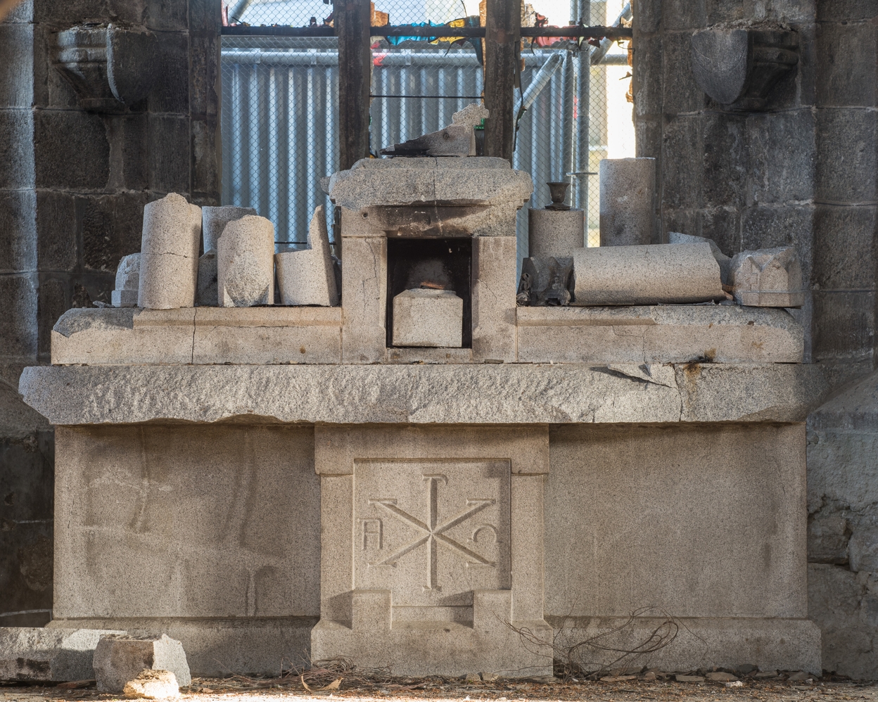 Trémel, le bourg : église paroissiale Notre-Dame, vue intérieure (après l'incendie du 21 juin 2016)Immatriculation