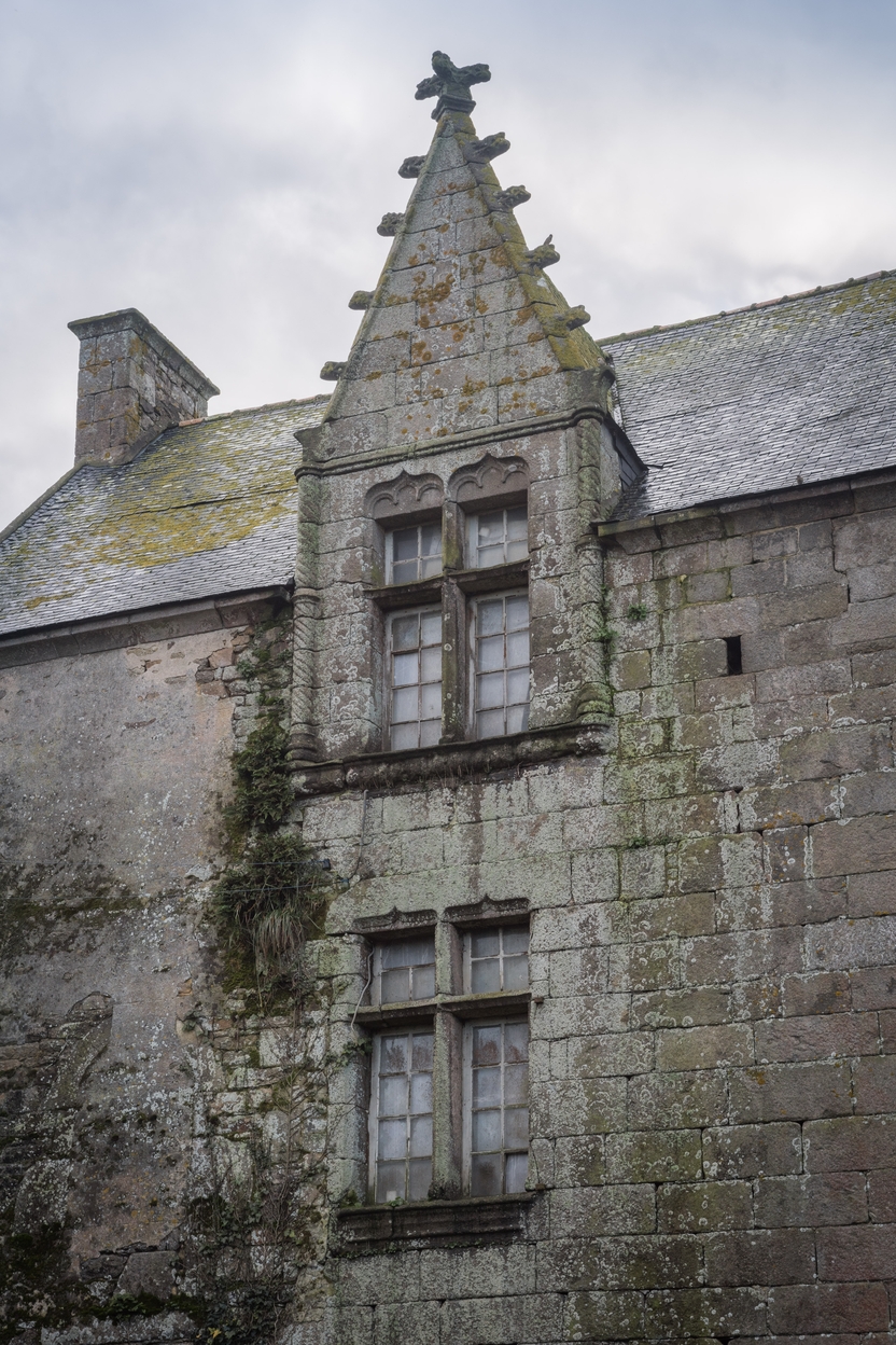 Trémel : manoir haut de Kermerzit, élévation antérieure orientée vers le nord, détail de l'une des deux lucarnes des comblesImmatriculation