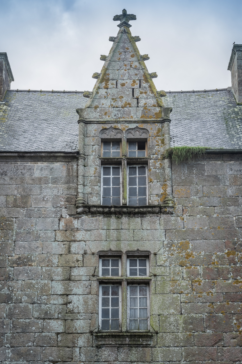 Trémel : manoir haut de Kermerzit, élévation antérieure orientée vers le nord, détail de l'une des deux lucarnes des comblesImmatriculation