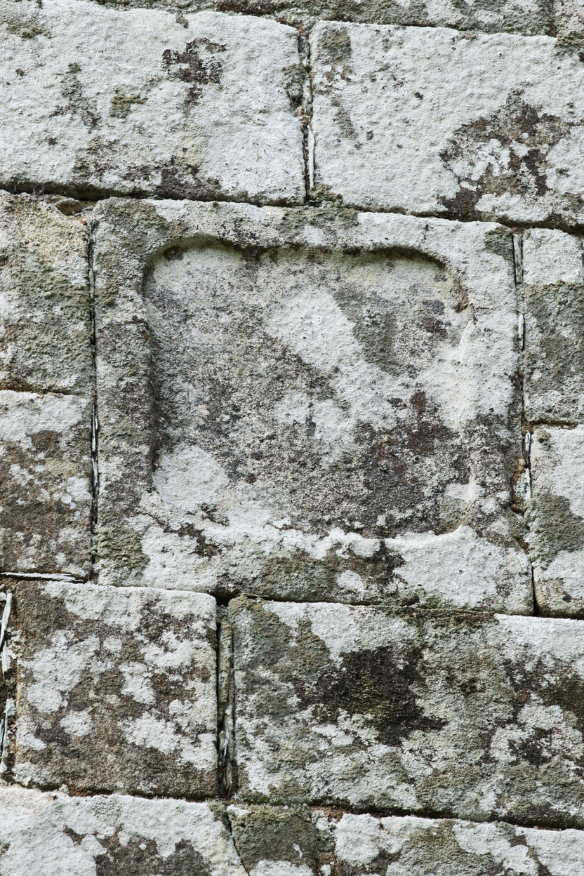 Plufur : chapelle Saint-Nicolas, détail du chevet polygonal, pignon élancé (fronton triangulaire ou gâble) ouvragé, armoiriesImmatriculation