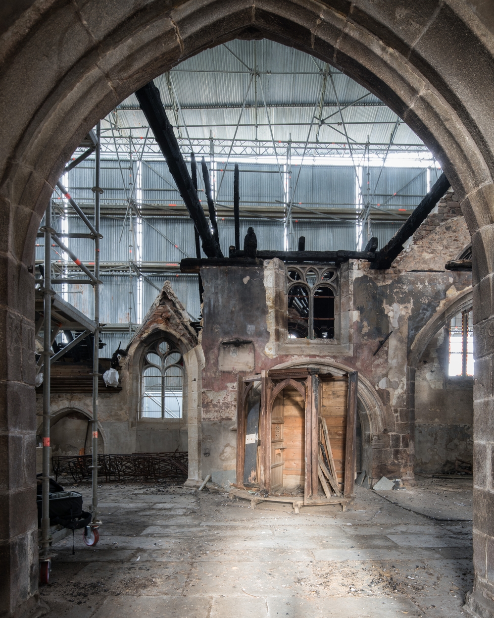 Trémel, le bourg : église paroissiale Notre-Dame, vue intérieure (après l'incendie du 21 juin 2016)Immatriculation