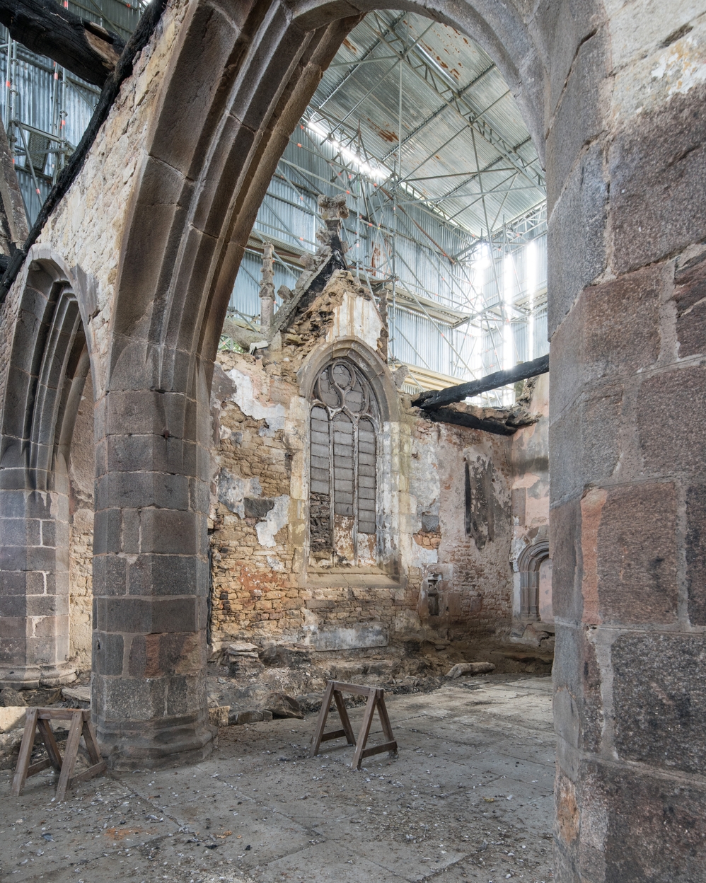 Trémel, le bourg : église paroissiale Notre-Dame, vue intérieure (après l'incendie du 21 juin 2016)Immatriculation