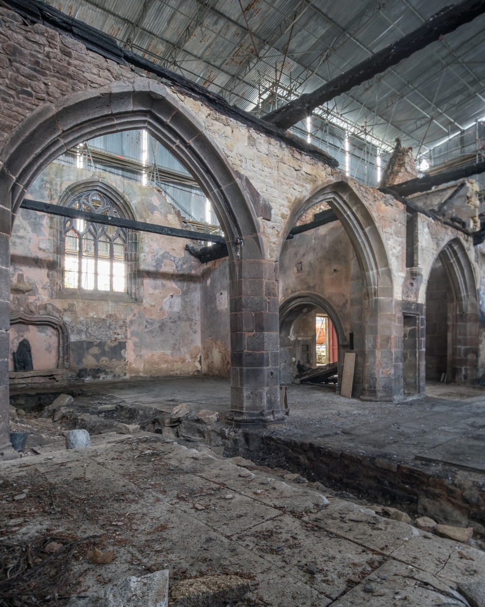 Trémel, le bourg : église paroissiale Notre-Dame, vue intérieure (après l'incendie du 21 juin 2016)Immatriculation