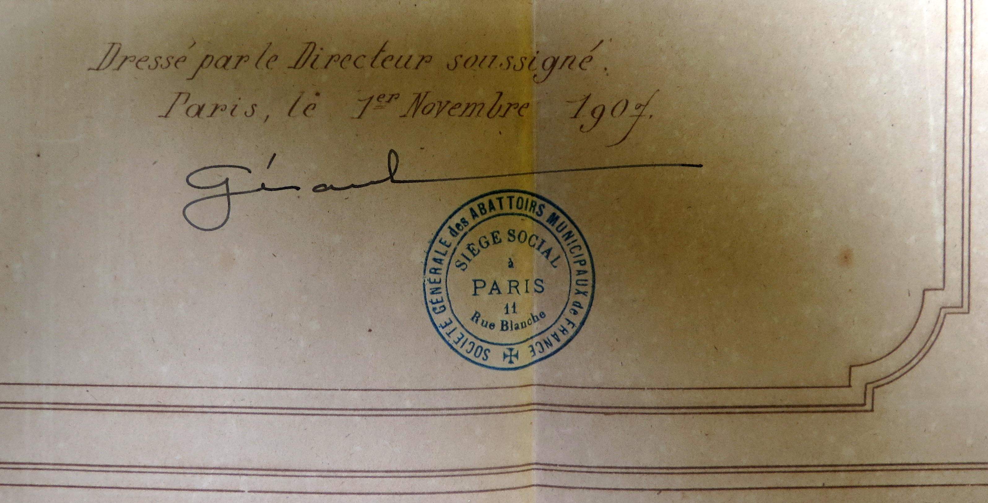 Tréguier, rue du Guindy : détail du plan d'ensemble de l'abattoir de la ville de Tréguier, 1er novembre 1907 (Archives municipales de Tréguier, 1M9)Immatriculation
