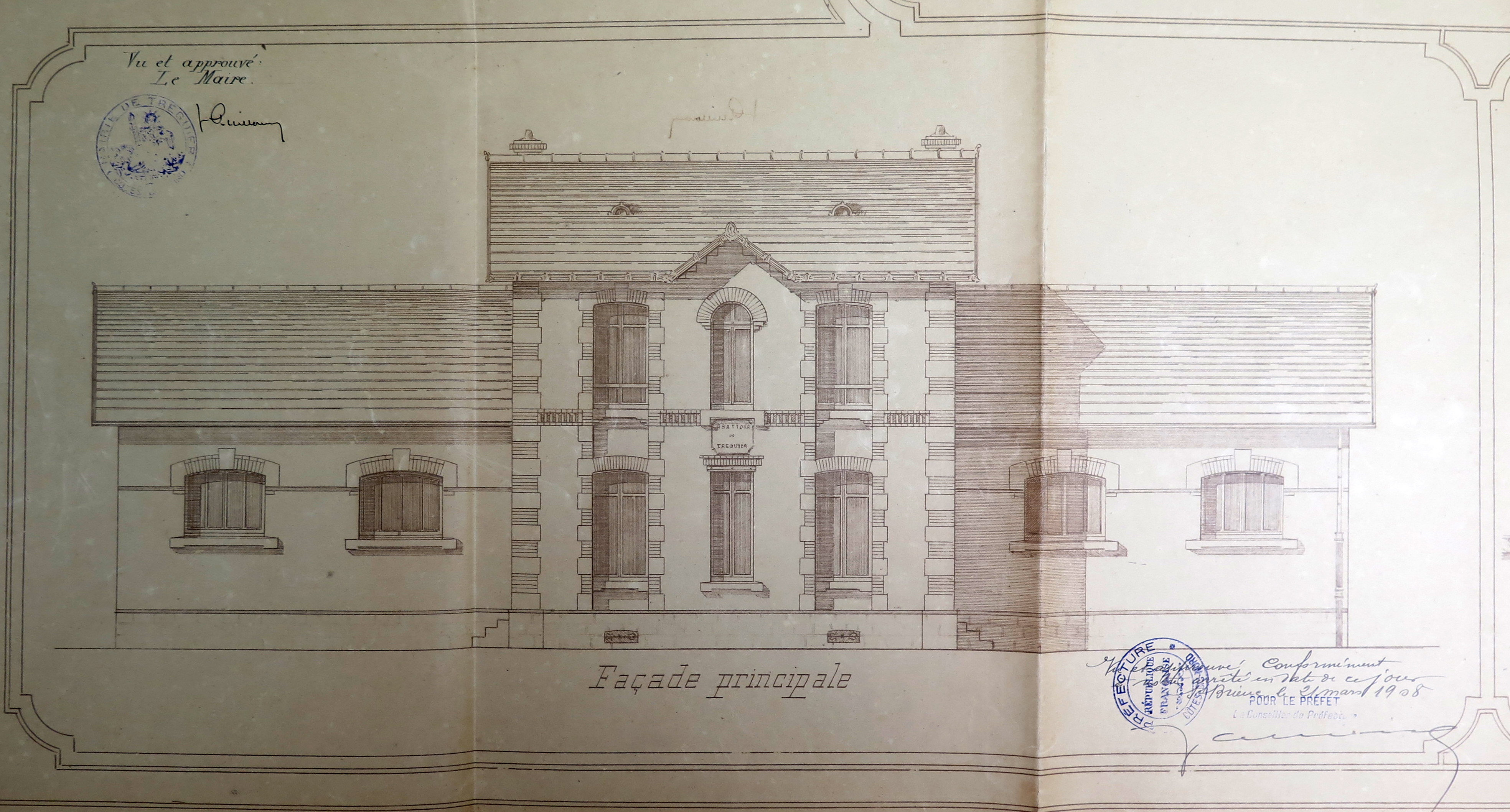 Tréguier, rue du Guindy : élévation de l'abattoir de la ville de Tréguier, 1er novembre 1907 (Archives municipales de Tréguier, 4F15)