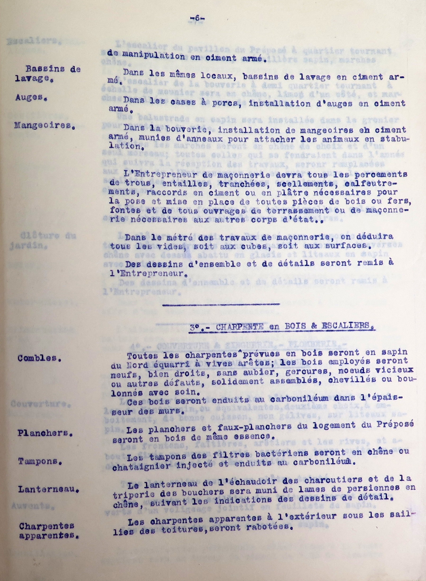 Tréguier, rue du Guindy : devis descriptif de l'abattoir de la ville de Tréguier par la Société générale des abattoirs municipaux de France, 1er novembre 1907, p. 6 (Archives municipales de Tréguier, 4F15)-