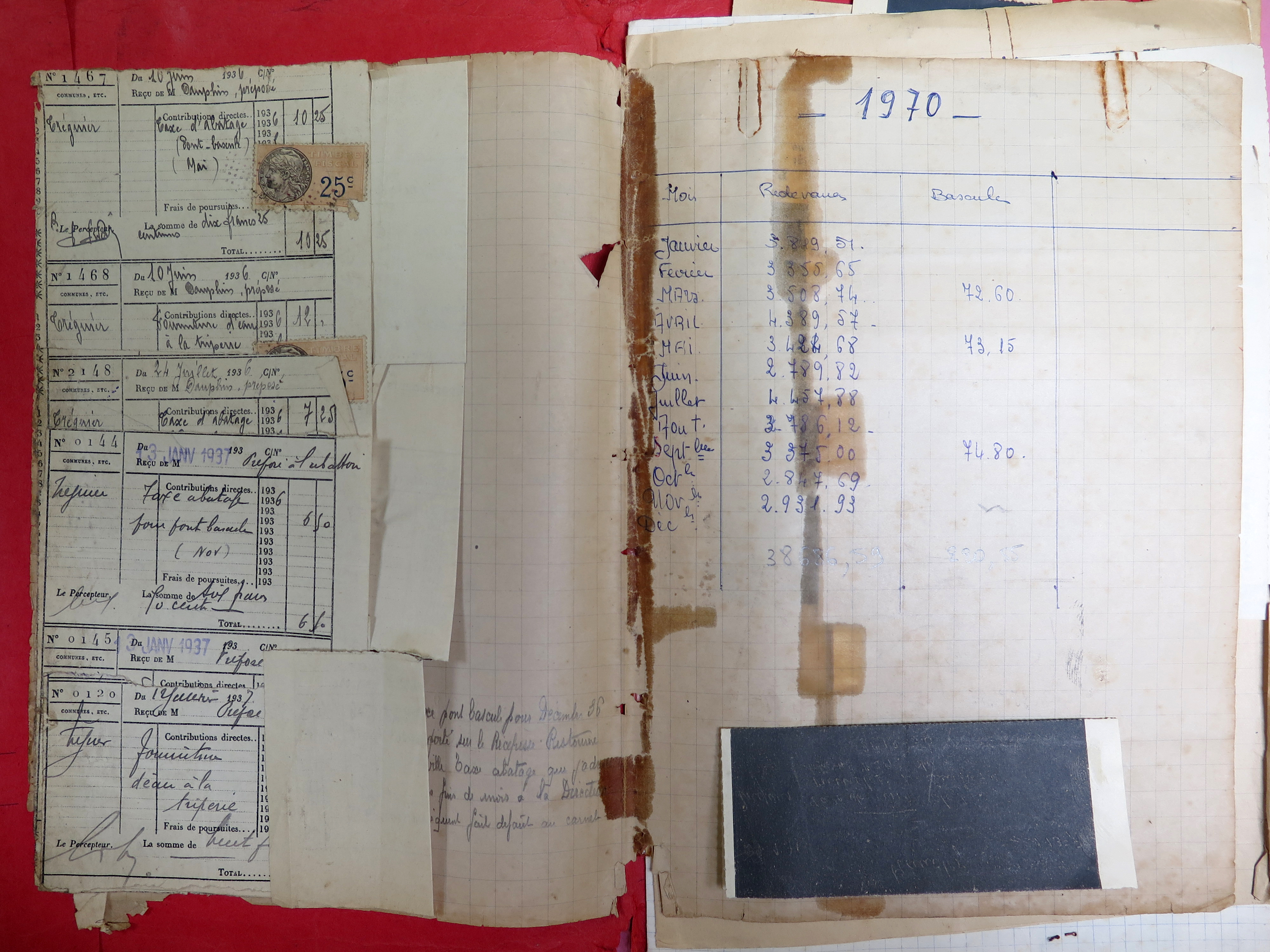 Extrait de l'un des cahiers de compte de l'abattoir de la ville de Tréguier, année 1970 (Archives municipales de Tréguier, 4F15)-