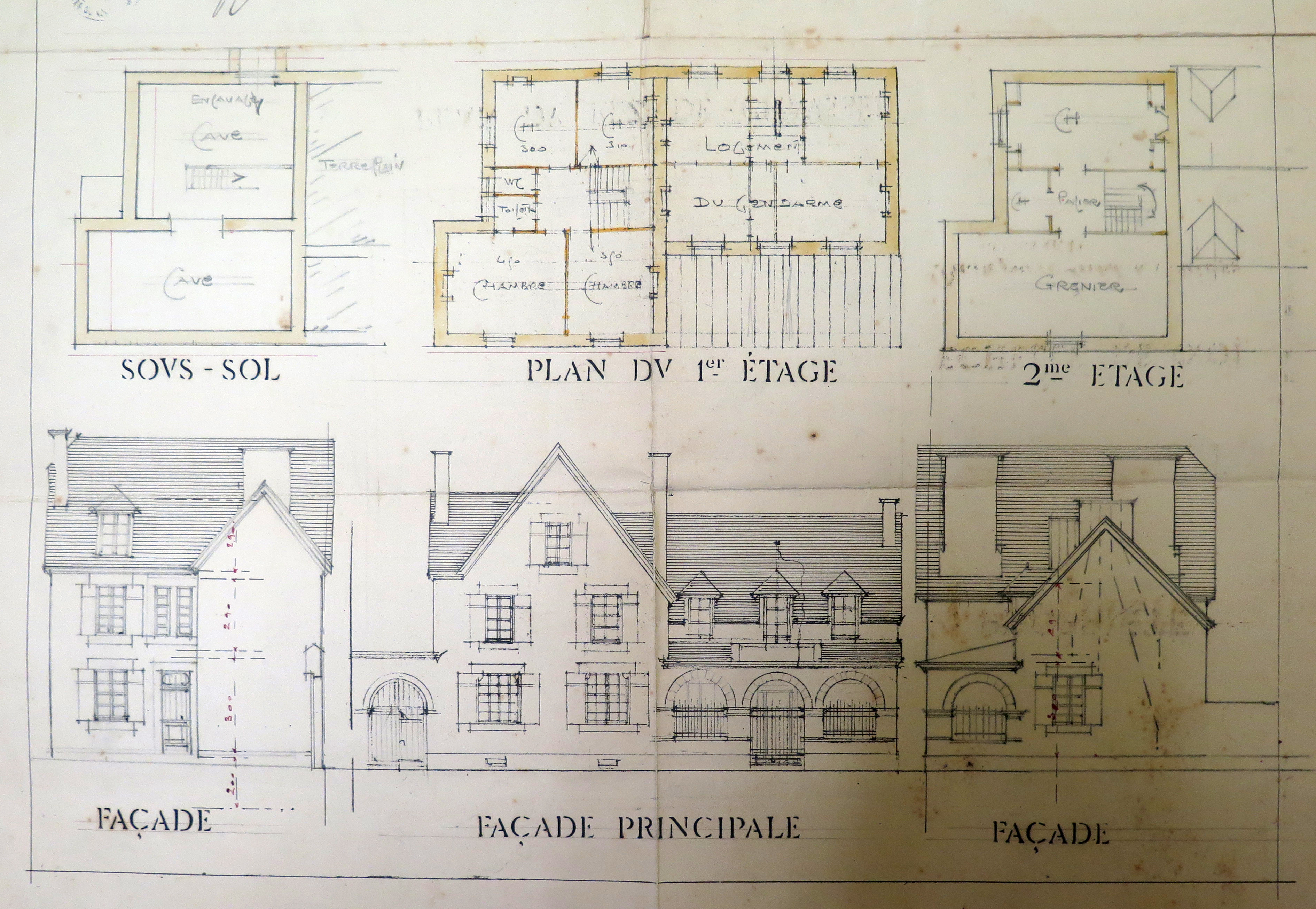 Tréguier, place de la République : plan et élévations d'une maison d'habitation et de bureaux pour l'Inscription maritime par l'architecte Georges Lefort de Guingamp, 15 novembre 1910 (Archives municipales de Tréguier, 5M4)Immatriculation