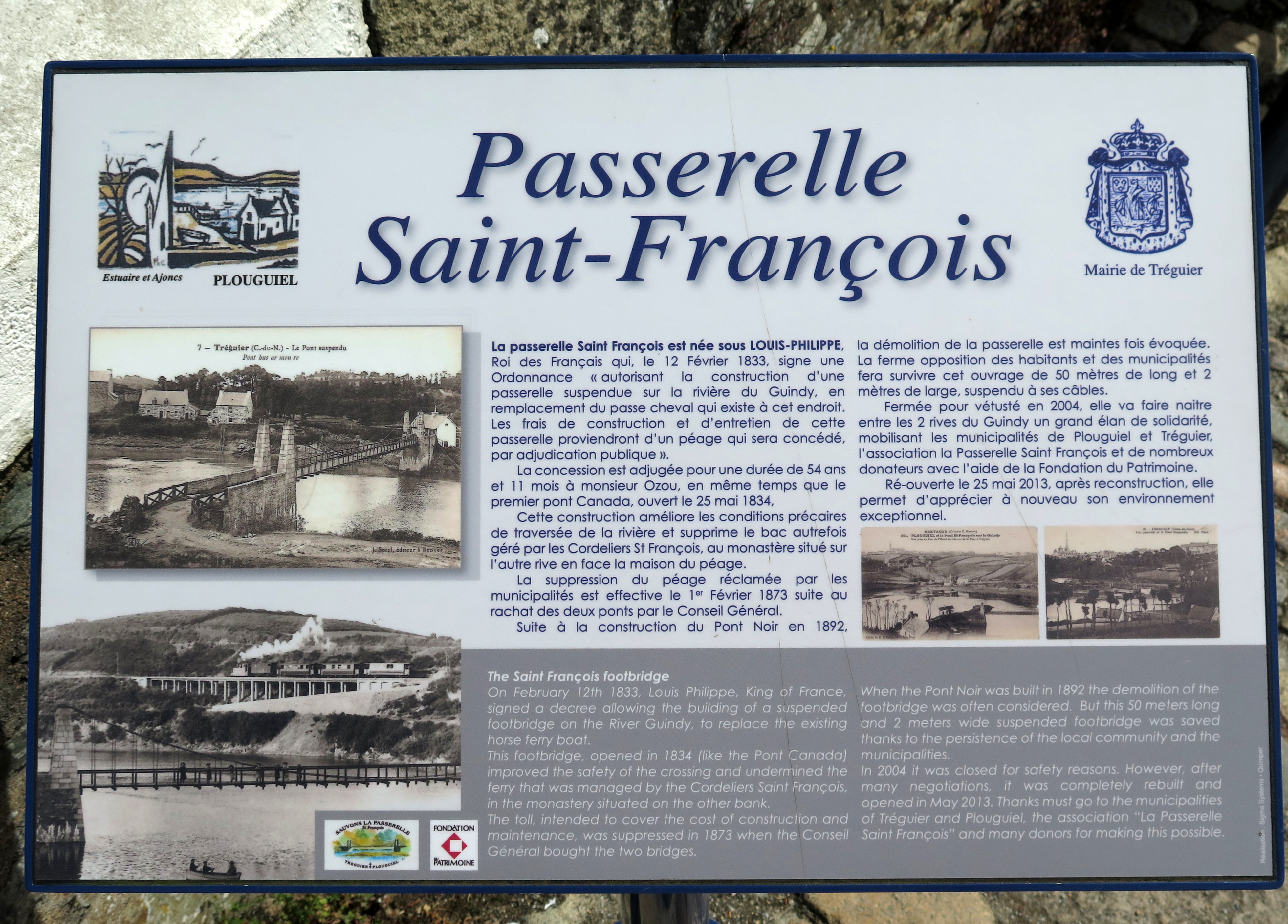 Plouguiel - Tréguier : pont dit "passerelle Saint-François", signalétique en placeImmatriculation