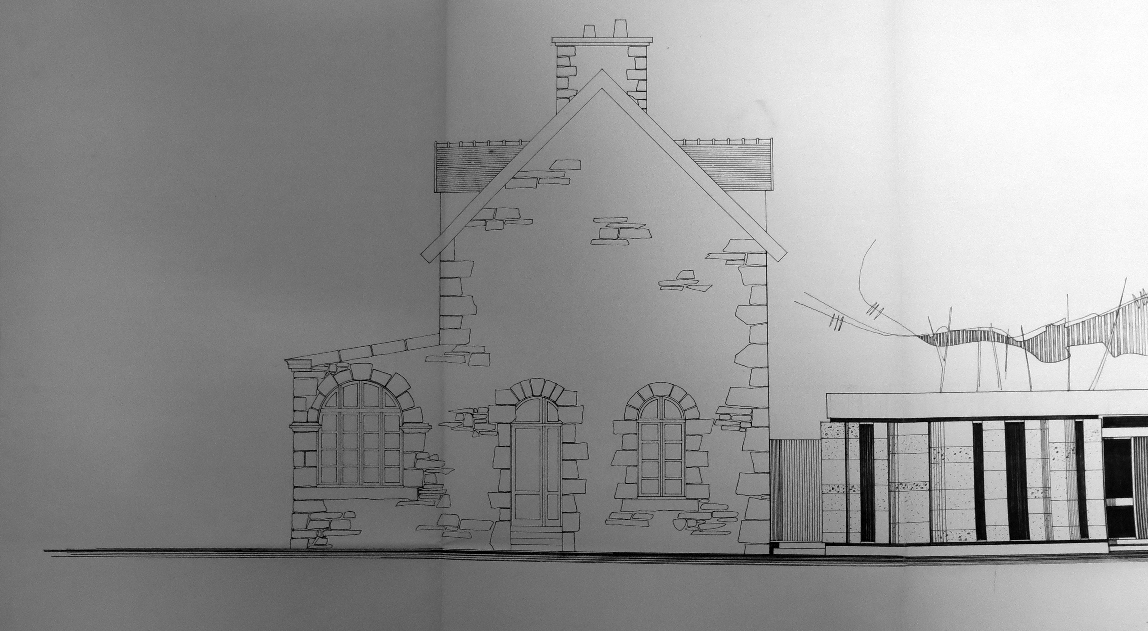 Tréguier, rue Pasteur : projet de centre médico-social par l'architecte André Hauvespre, détail de l'élévation sur rue, 14 mai 1968 (Archives municipales de Tréguier, 6M4)Immatriculation
