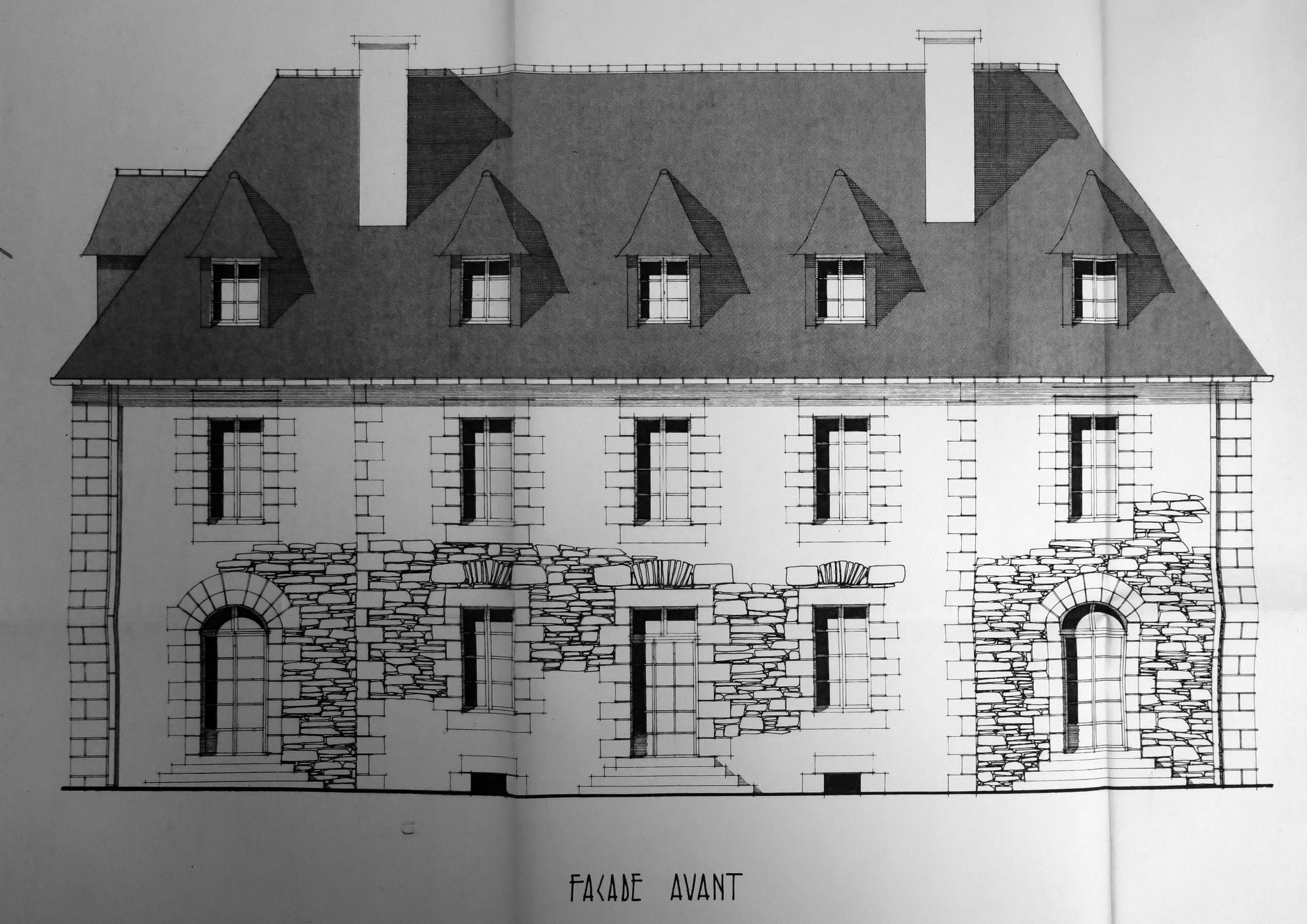 Projet de transformation en immeuble à logements de l'Hôtel de La Tour par l'architecte Jean-Louis Bideau, élévation sud, 22 octobre 1979 (Archives municipales de Tréguier, 6M6)Immatriculation