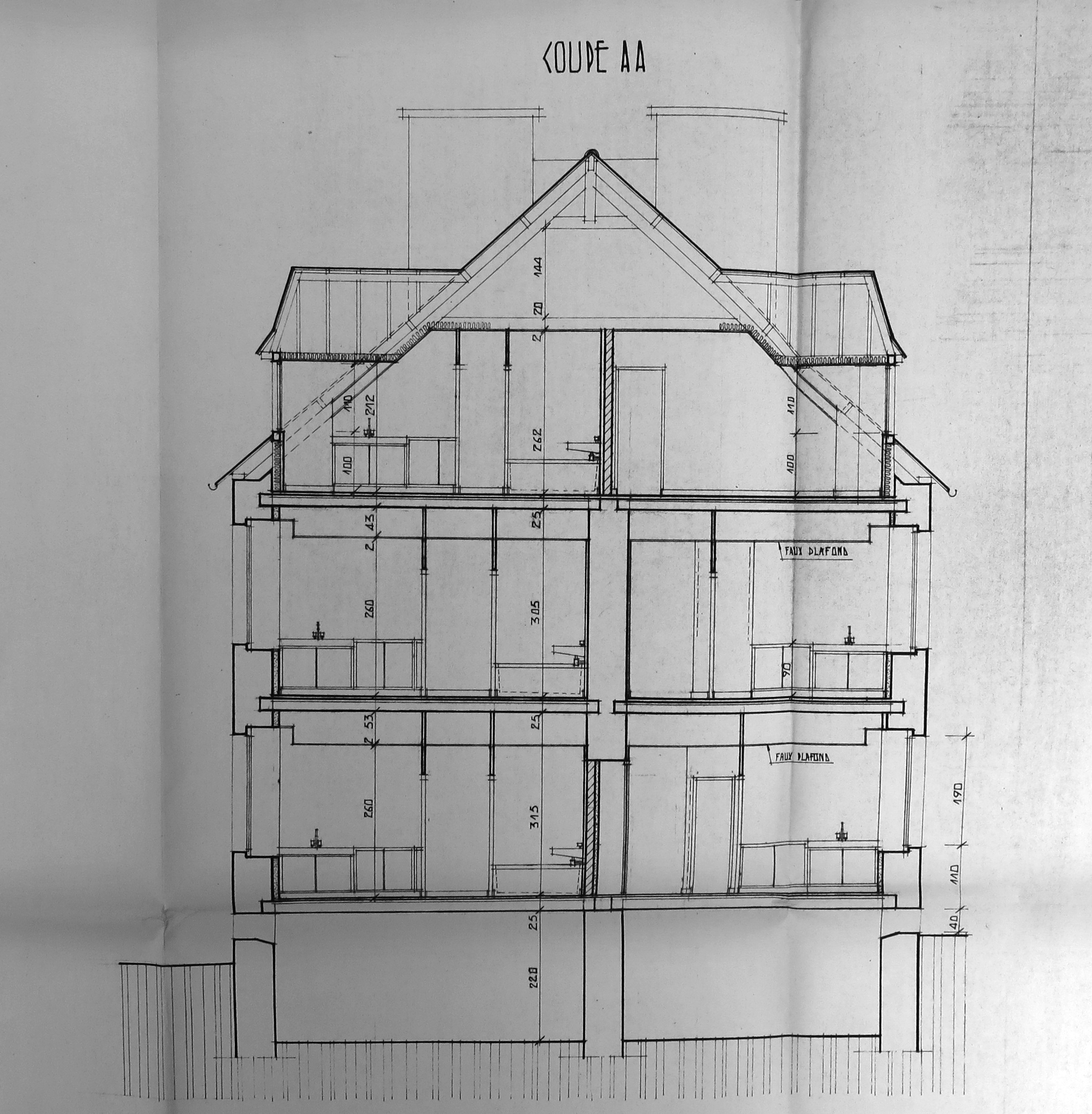 Projet de transformation en immeuble à logements de l'Hôtel de La Tour par l'architecte Jean-Louis Bideau, coupe transversale, 22 octobre 1979 (Archives municipales de Tréguier, 6M6)Immatriculation