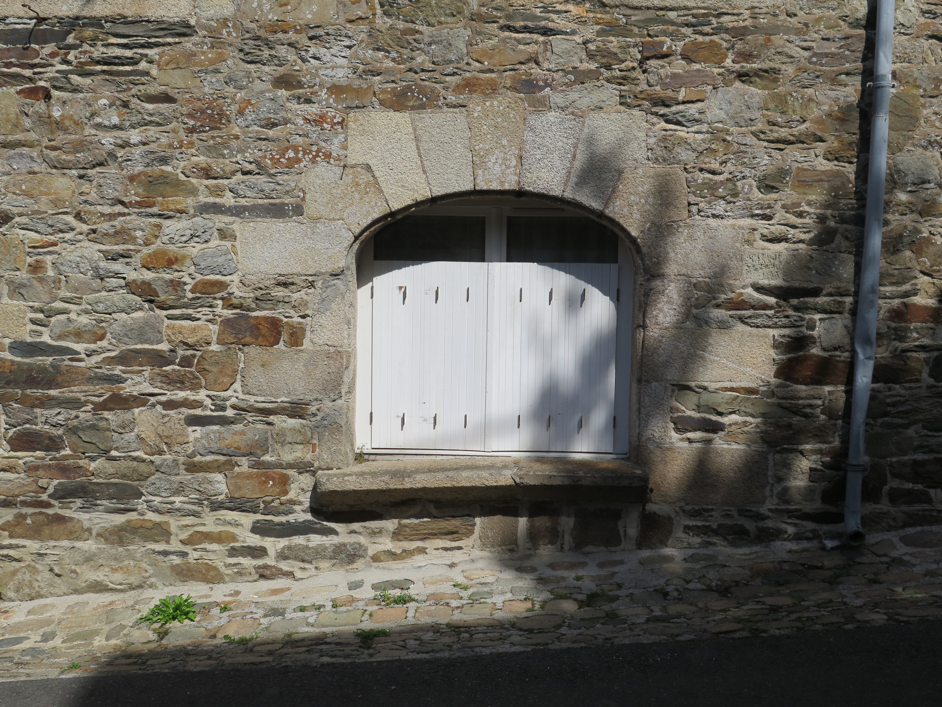 Tréguier, 8 rue Saint-François : maison de négociant, élévation ouest sur rue, détail d'une fenêtre du rez-de-chaussée (fonction probablement commerciale)Immatriculation