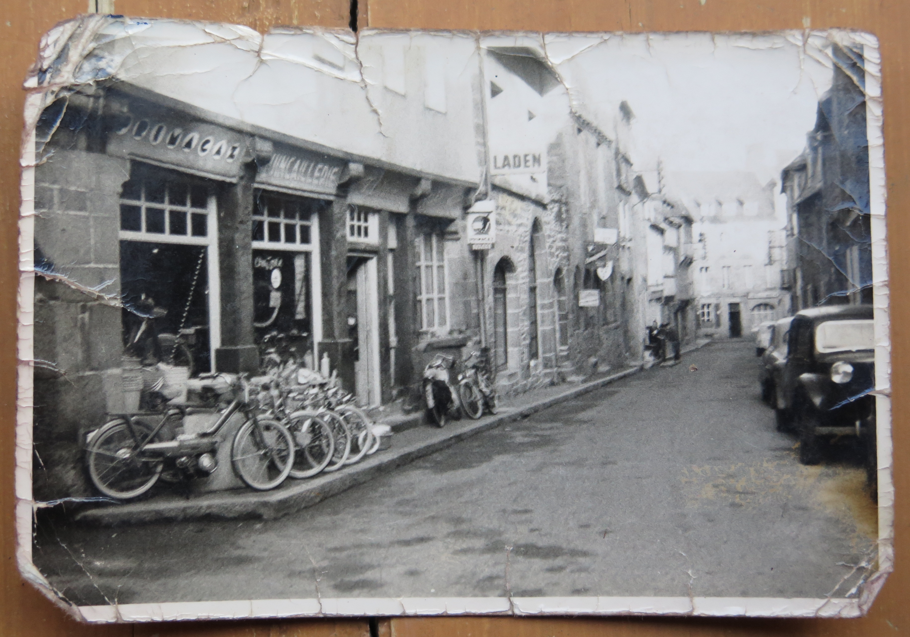 Tréguier, rue Colvestre : devanture du magasin de quincaillerie / vente de matériels Primagaz, photographie ancienne (collection particulière : débit de boissons Madame Mouss'Tache)Immatriculation