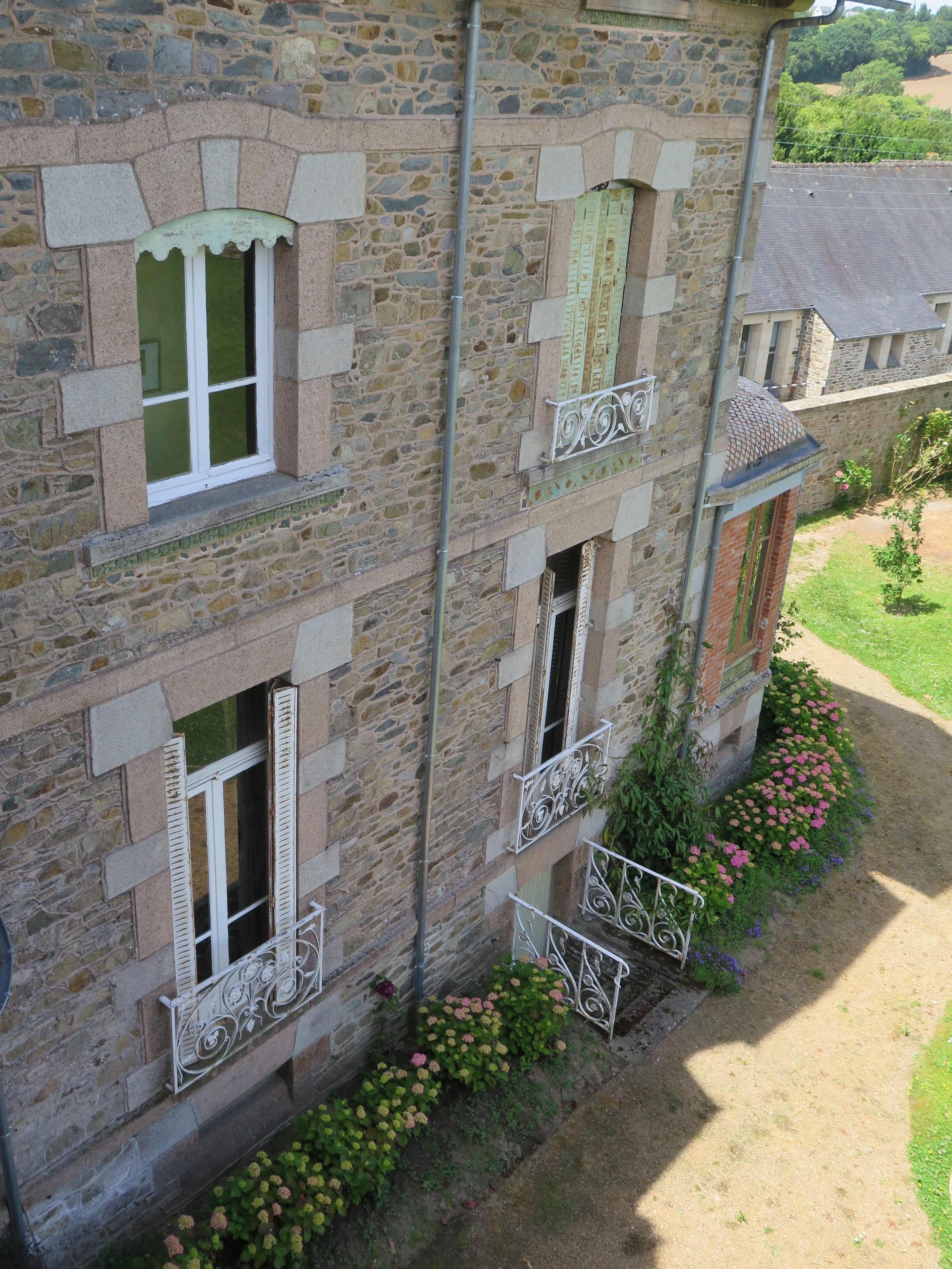 Tréguier, 8 rue Lamennais : maison, détail de l'aile nord construite en 1904, fenêtres et ferronnerieImmatriculation