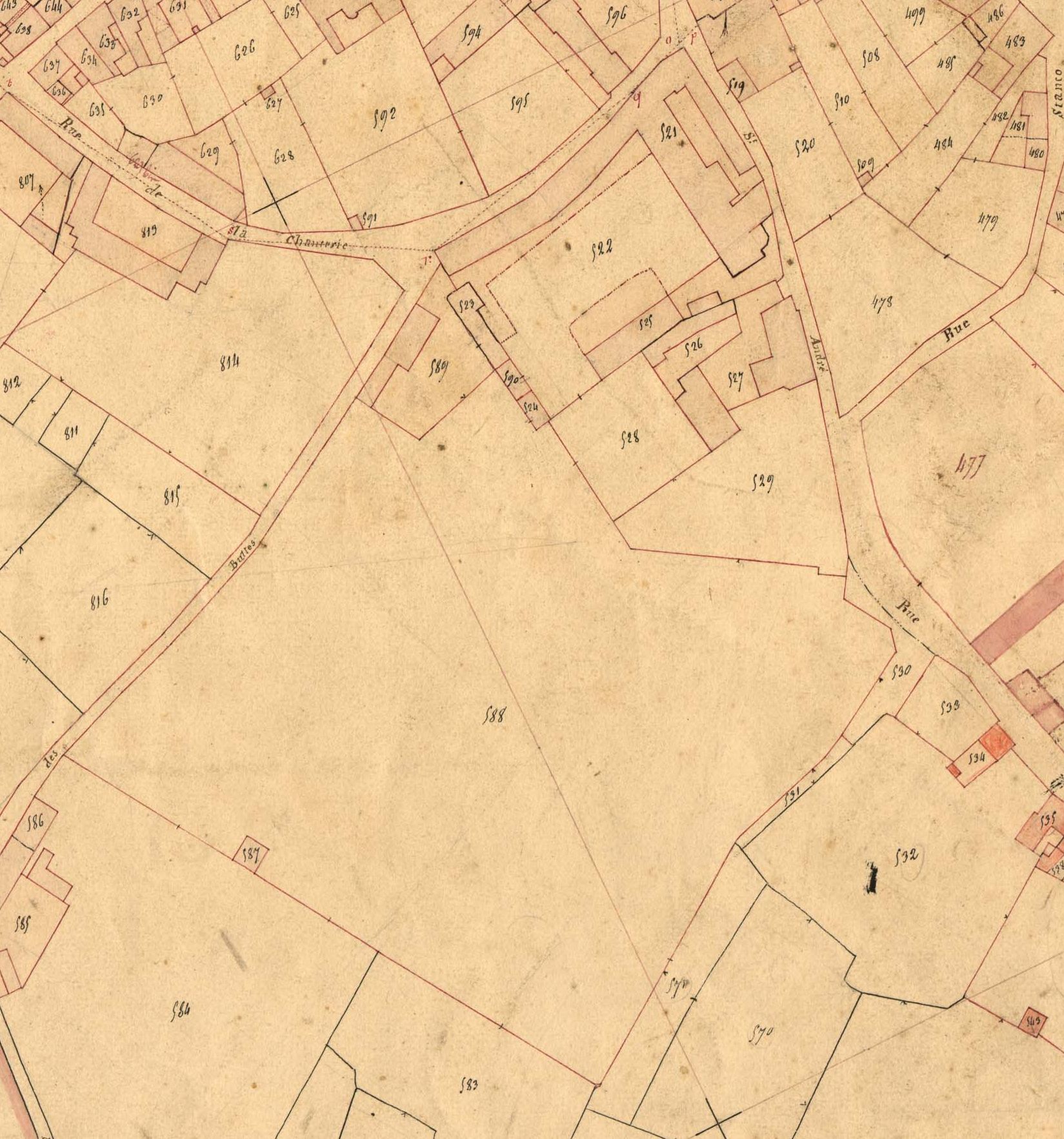 Le couvent des Filles de la Croix en 1834. Extrait du cadastre ancien, section A2 (A.D. 22, série 3P 362/1-4)Immatriculation