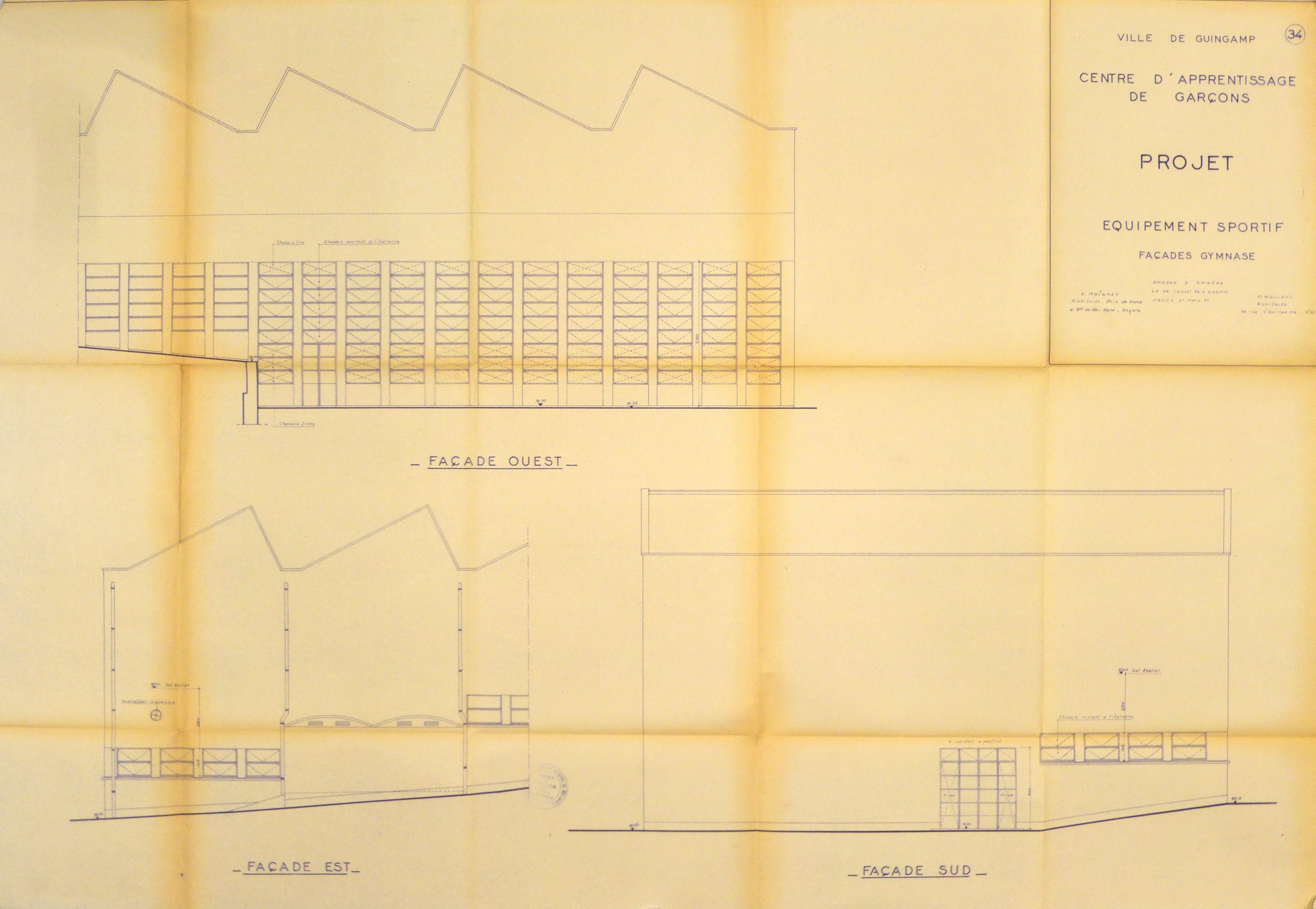 Façades du gymnase, par Y. Moignet et P. Rolland (1956)Immatriculation