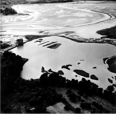 Vue aérienne prise vers les années 1960, Moulin sur la digue et bassin de retenue (Archives privées)Immatriculation
