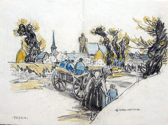 Taden, les marins arrivant au bourg, par Yvonne Jean-Haffen, vers 1940Immatriculation