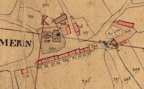 Extrait du cadastre napoléonien de 1834, section A feuille 1. L'église paroissiale Saint-Mérin.Immatriculation