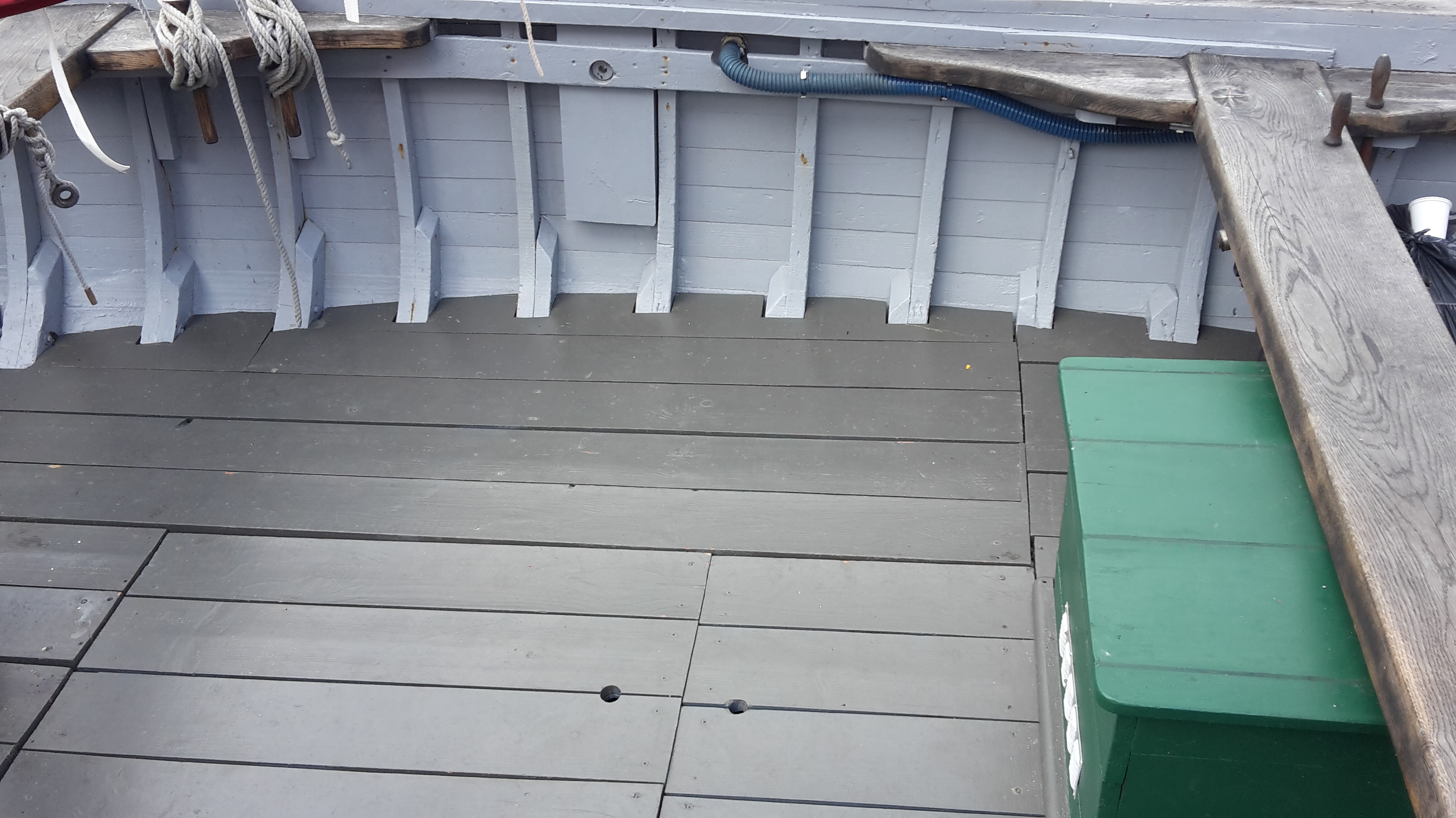 Vue de la coque intérieure et des membrures restaurées entre 2010 et 2015Immatriculation