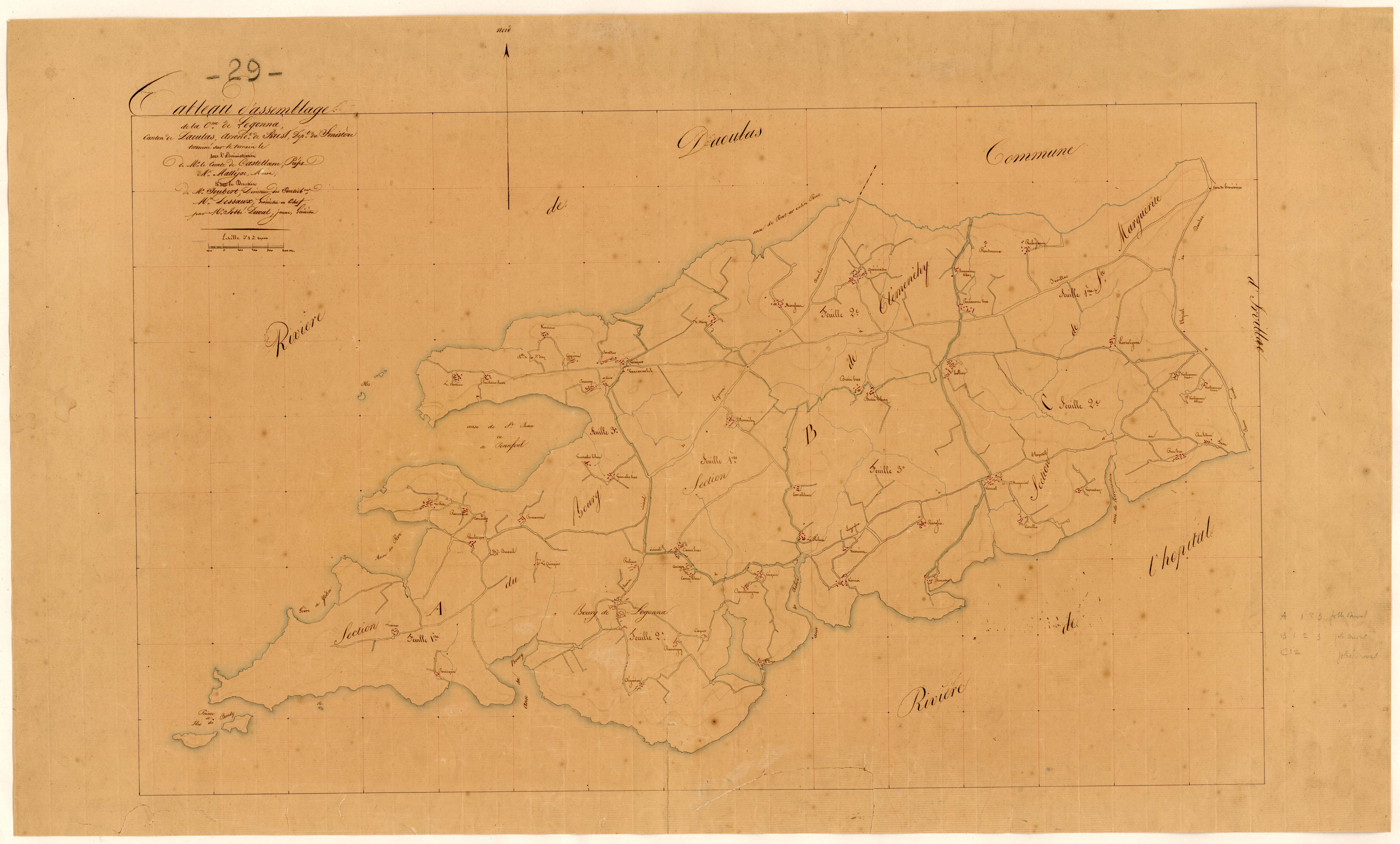 Archives départementales du Finistère. Série 3P202 . Tableau d'assemblage et cadastre parcellaire, 1826.