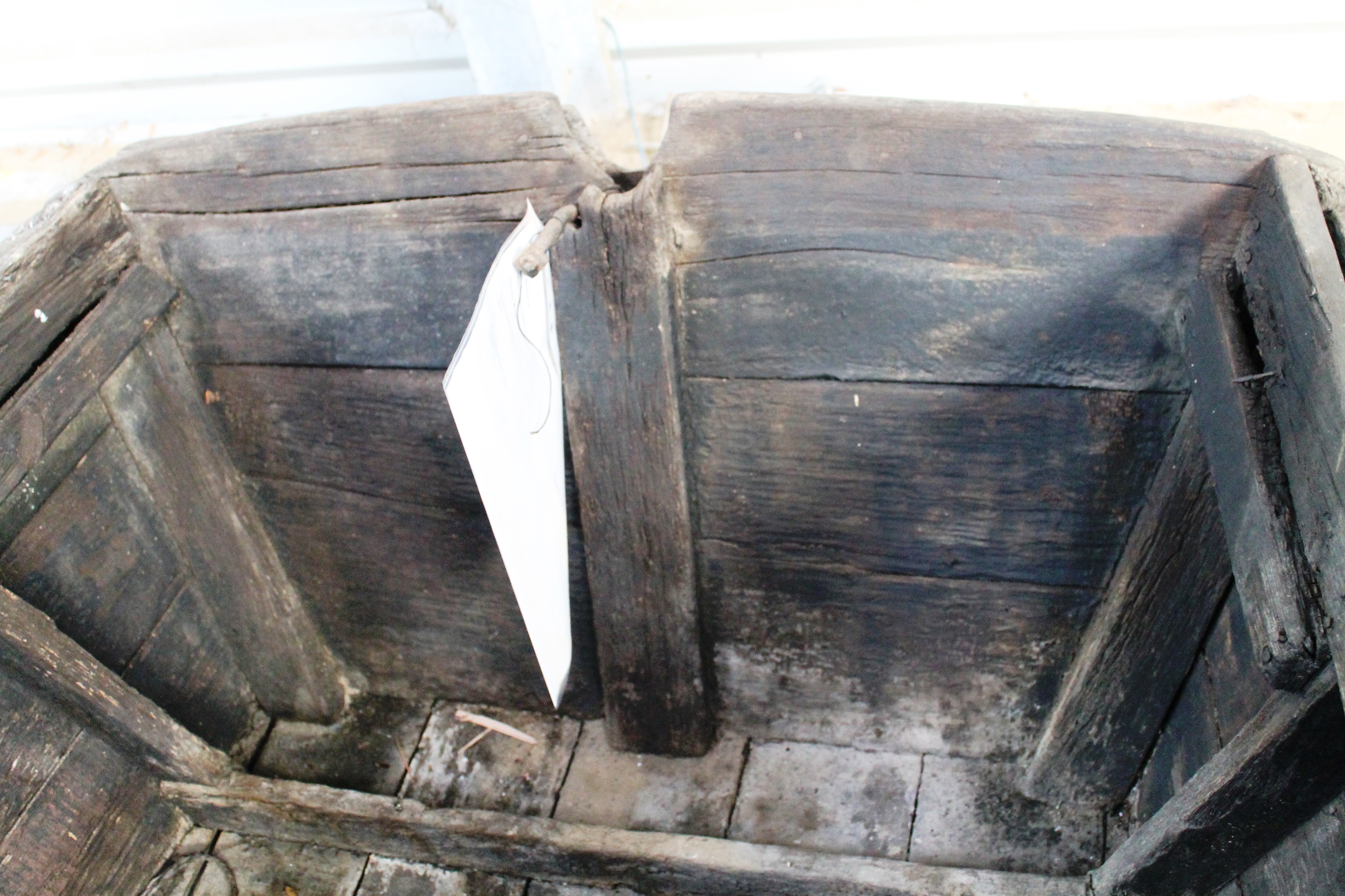 Plate de l'Aulne (Douarnenez) vue de l'intérieur arrière, on remarque l'étambot et les deux estains.Immatriculation