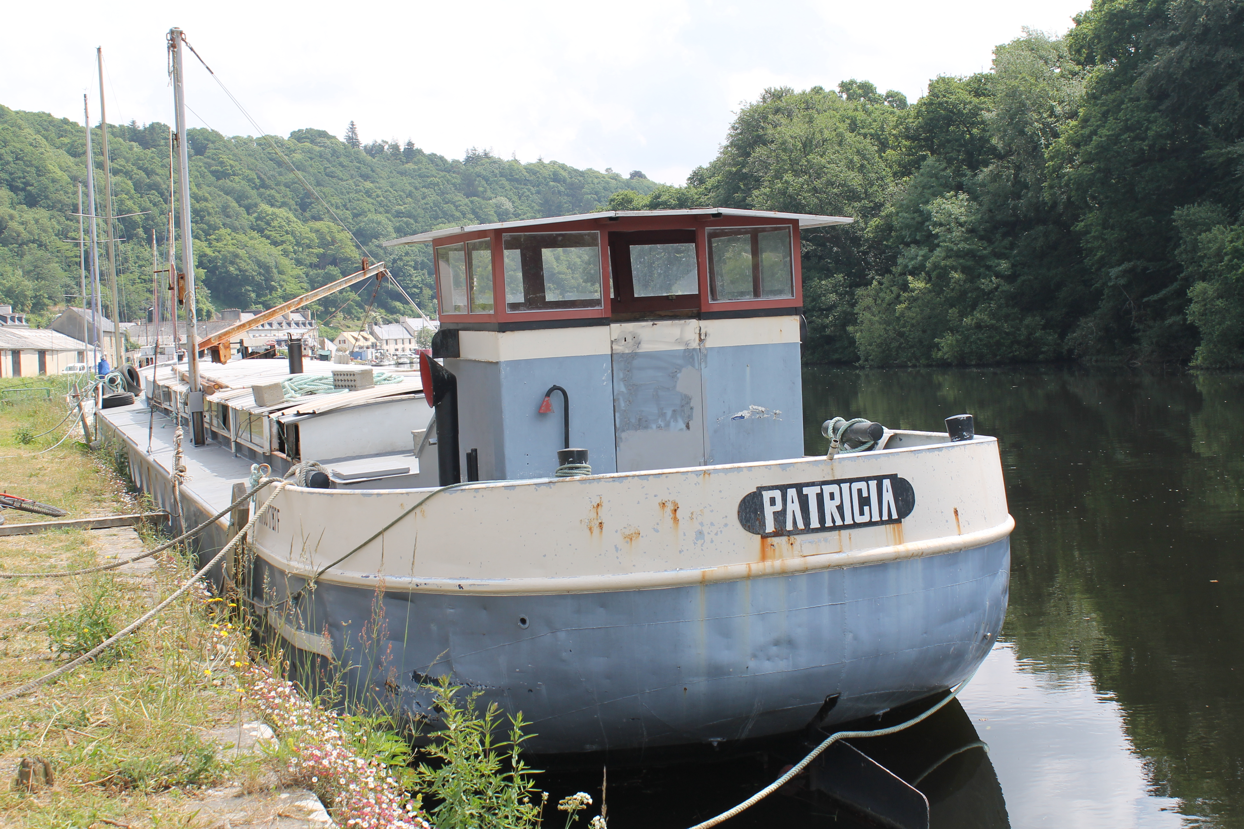 Péniche Patricia, à quai à Port-Launay, vue d'arrièreImmatriculation