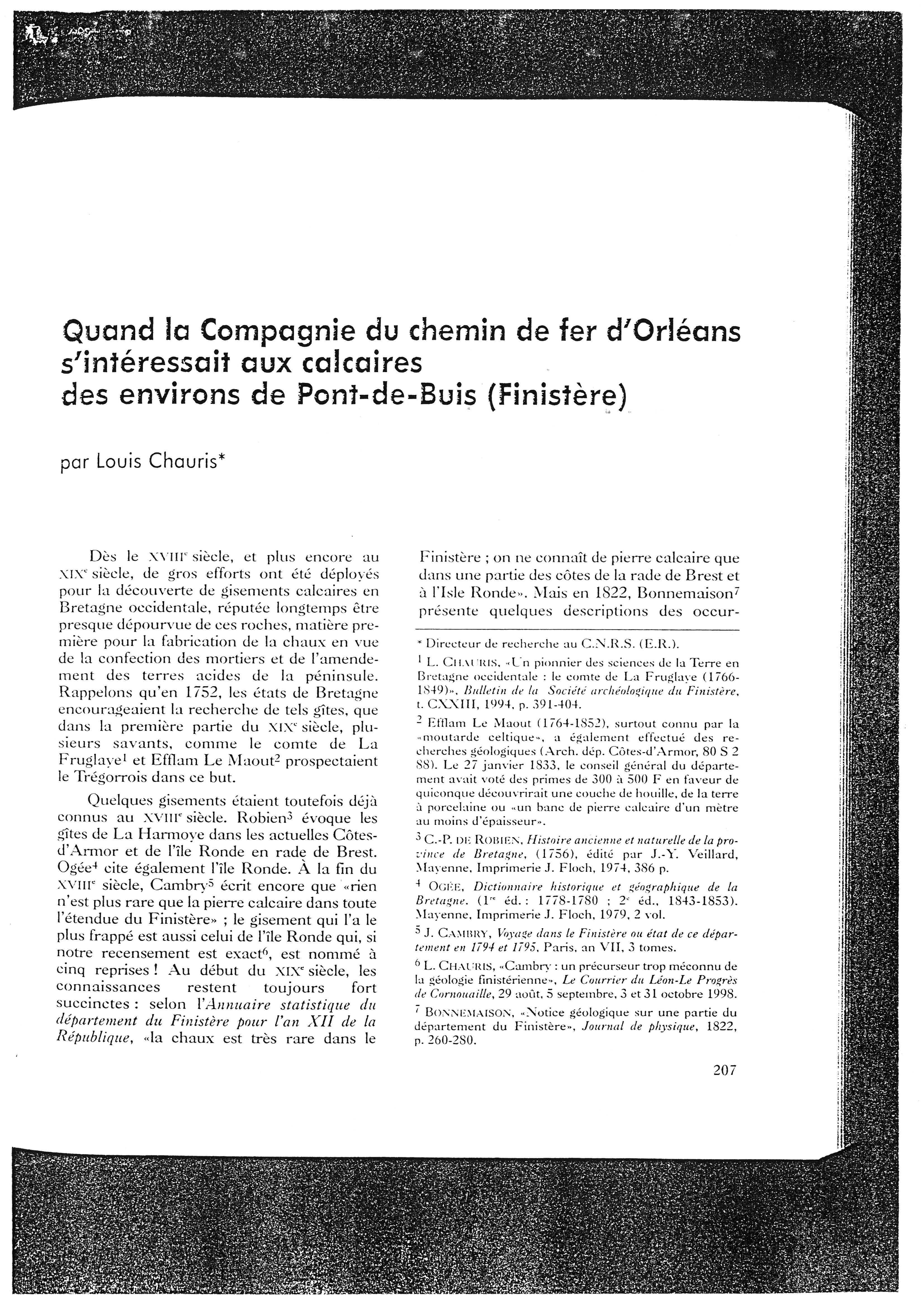 Four à chaux de Port de Carhaix, Motreff, Article de Louis Chauris, dans la Société archéologique du Finistère (2)Immatriculation