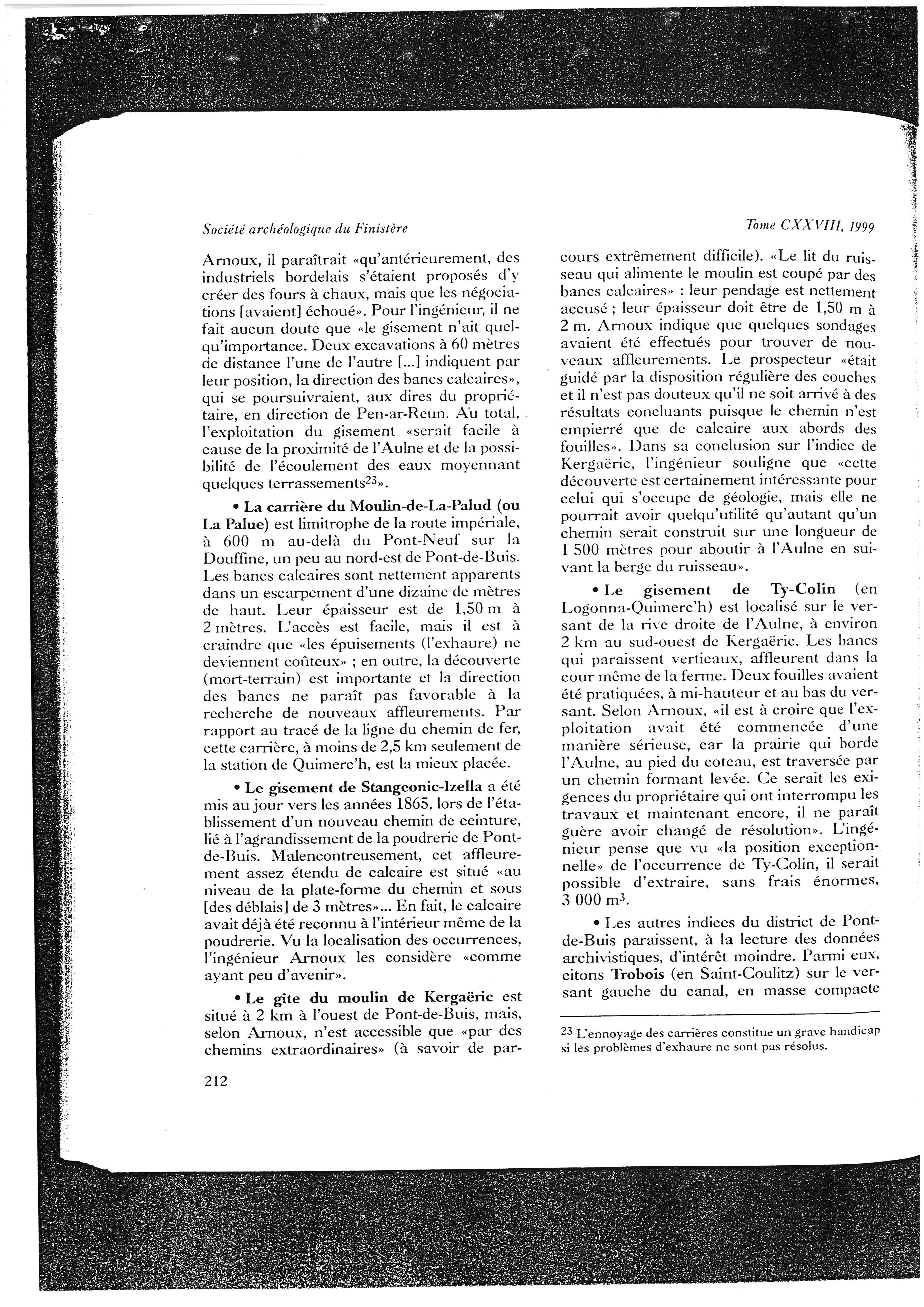 Four à chaux de Port de Carhaix, Motreff, Article de Louis Chauris, dans la Société archéologique du Finistère (7)Immatriculation
